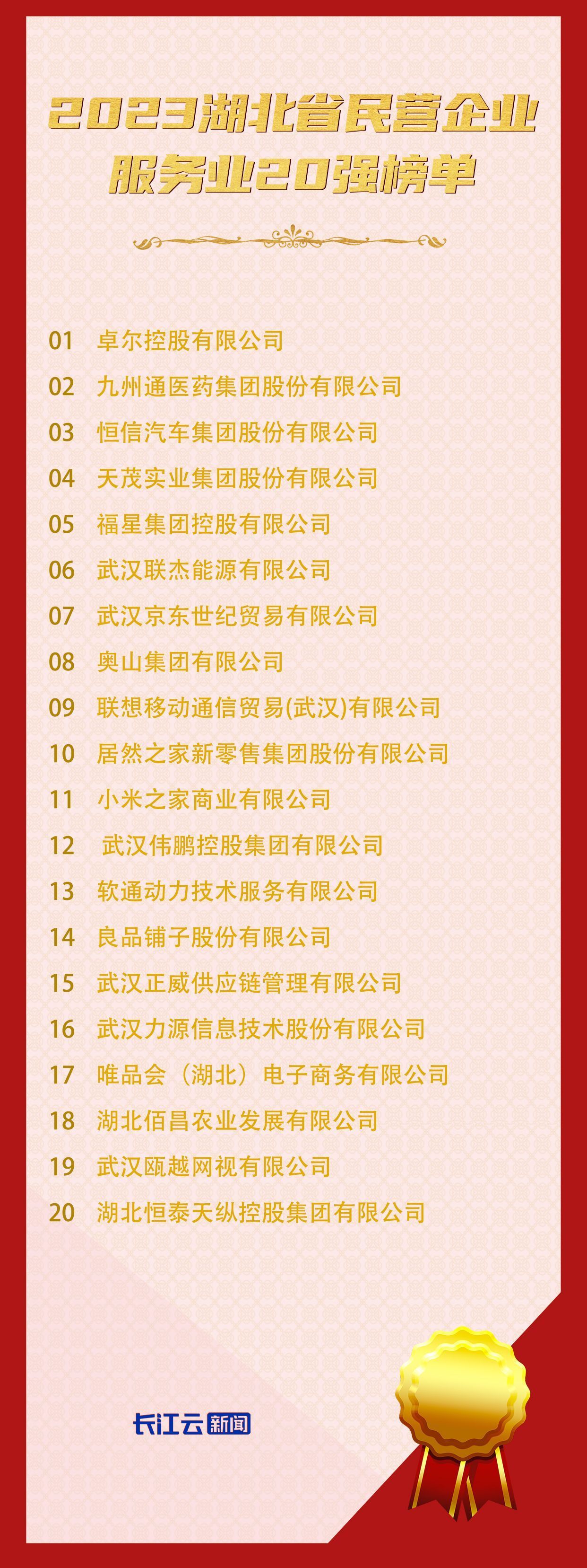 今天(12月5日),湖北省工商业联合会正式发布了2023湖北民营企业100强榜单、2023湖北民营企业制造业100强榜单、2023湖北民营企业服务业20强榜单。