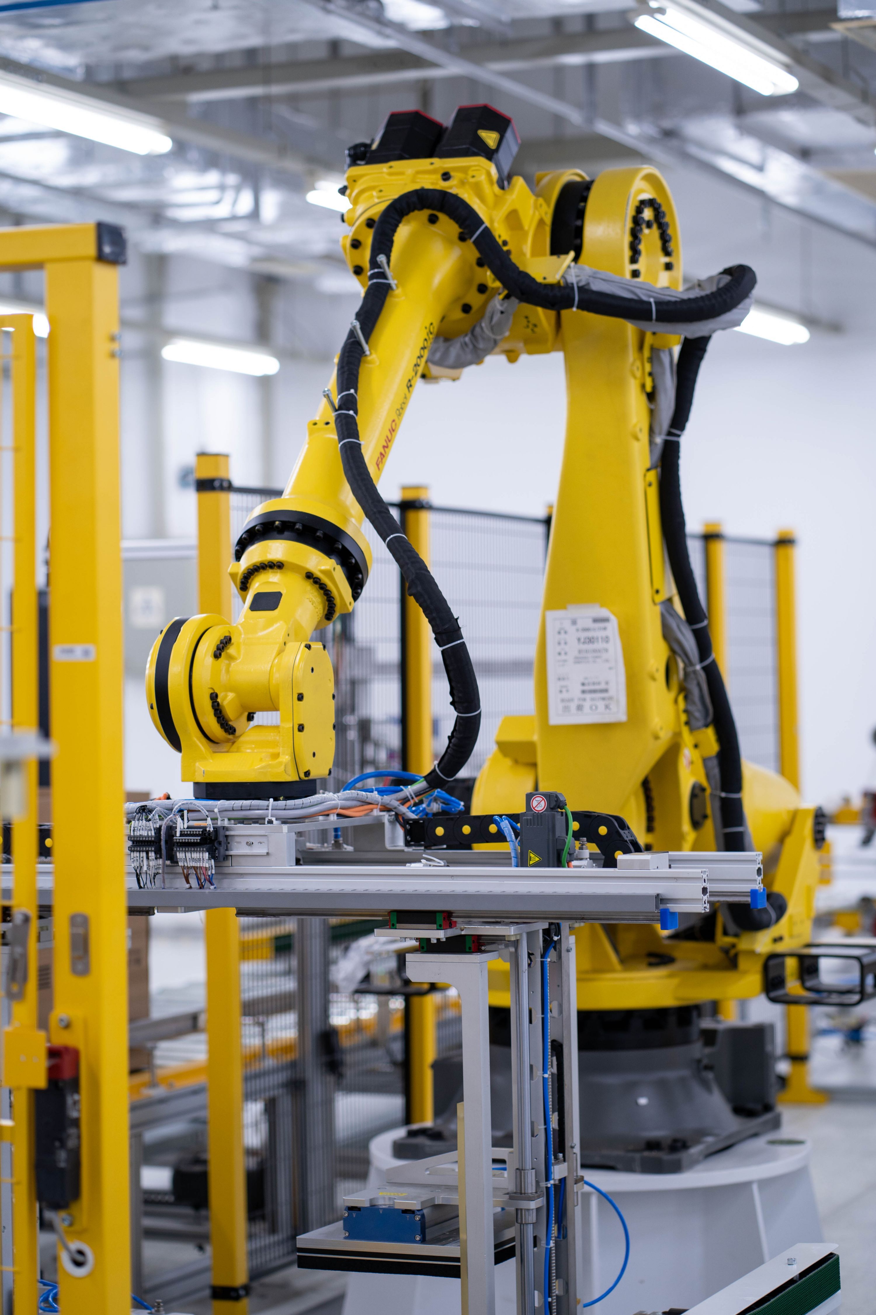 烽火通信系统设备制造部车间机械臂。