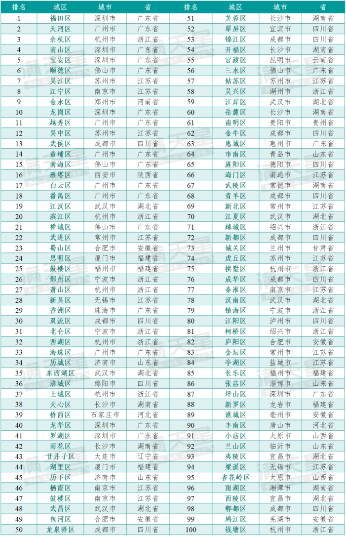 对比去年榜单梳理发现,武汉市新增一个百强区,即排名第78的汉南区;东西湖区从第36上升到第35,排名上升1位;武昌区从第55上升到第48,排名上升7位;江岸区从第64上升到第59,排名上升5位;江夏区从第76上升到第70,排名上升6位。