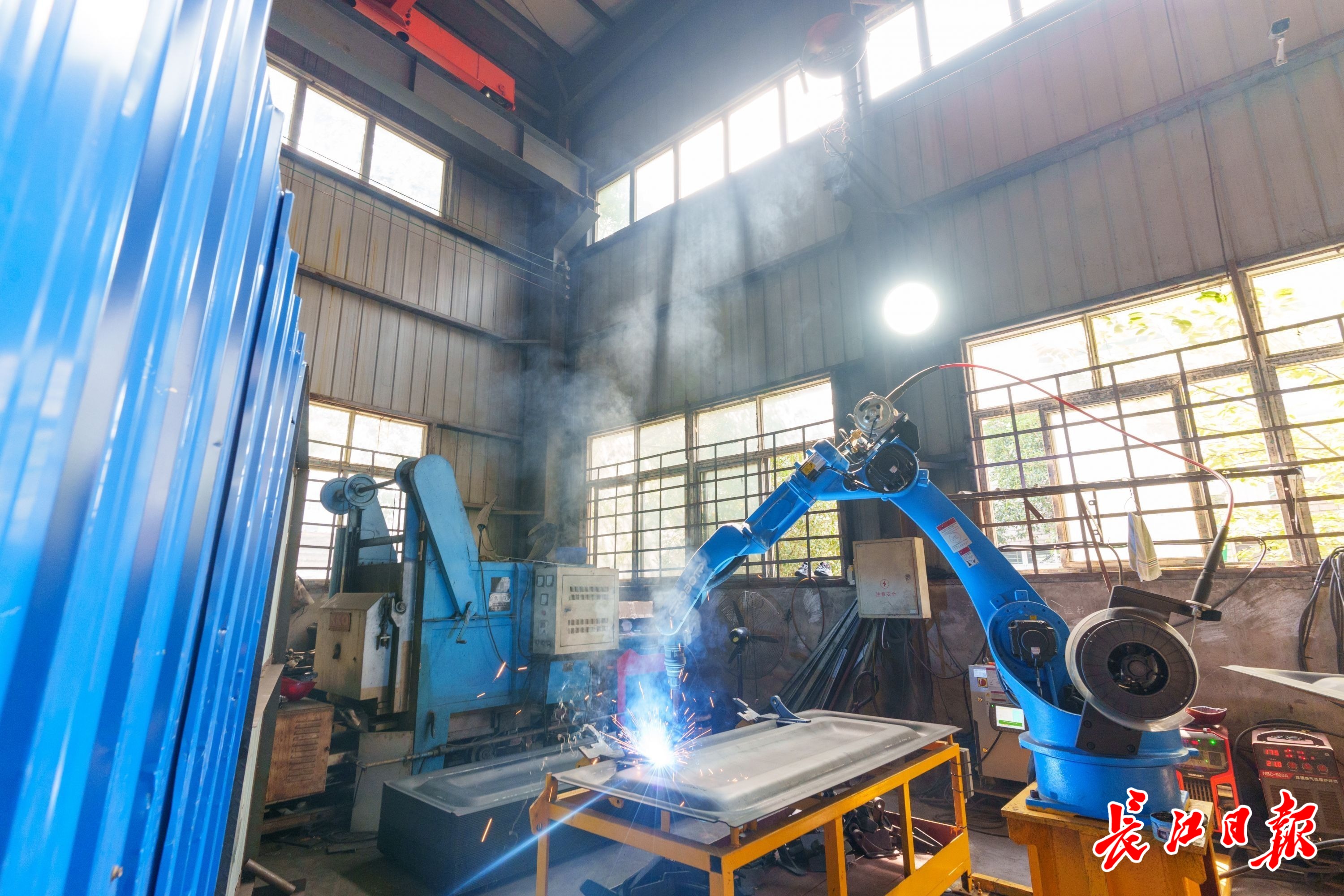 机器人沿着事先规划好的路线焊接门板。见习记者刘庆乐 摄