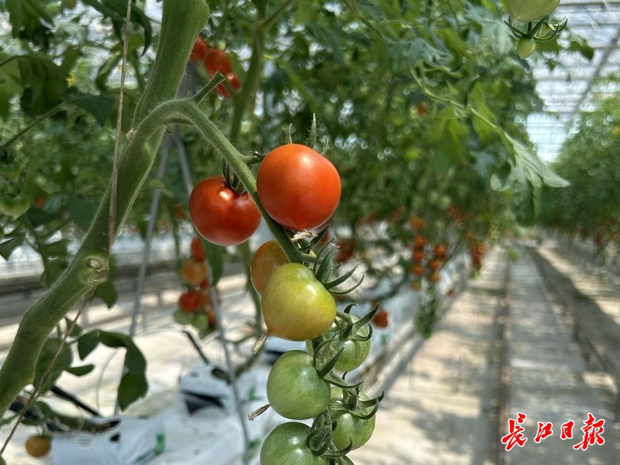 群力村鱼菜共生大棚里,西红柿茁壮生长。长江日报记者 潘璐 摄