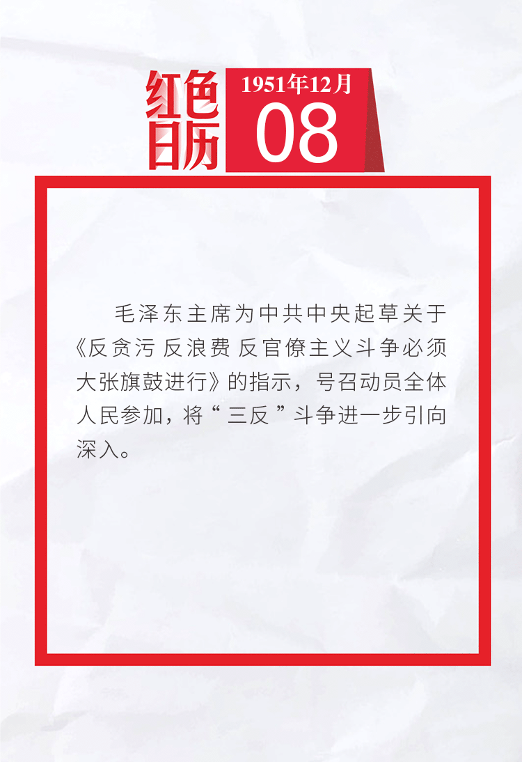 1951年的今天,毛泽东主席起草关于“三反”斗争必须大张旗鼓进行的指示|红色日历