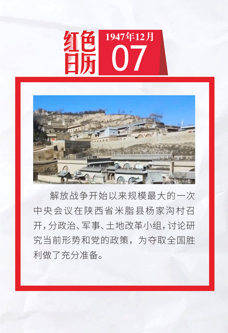 1947年的今天,解放战争开始以来规模最大的一次中央会议召开|红色日历 ©原创 2023-12-07 11:16 0 图片来源:《百炼成钢·党史上的今天》 整理:喻鑫 设计:陈昌 制作:张莉 【编辑:邓腊秀】