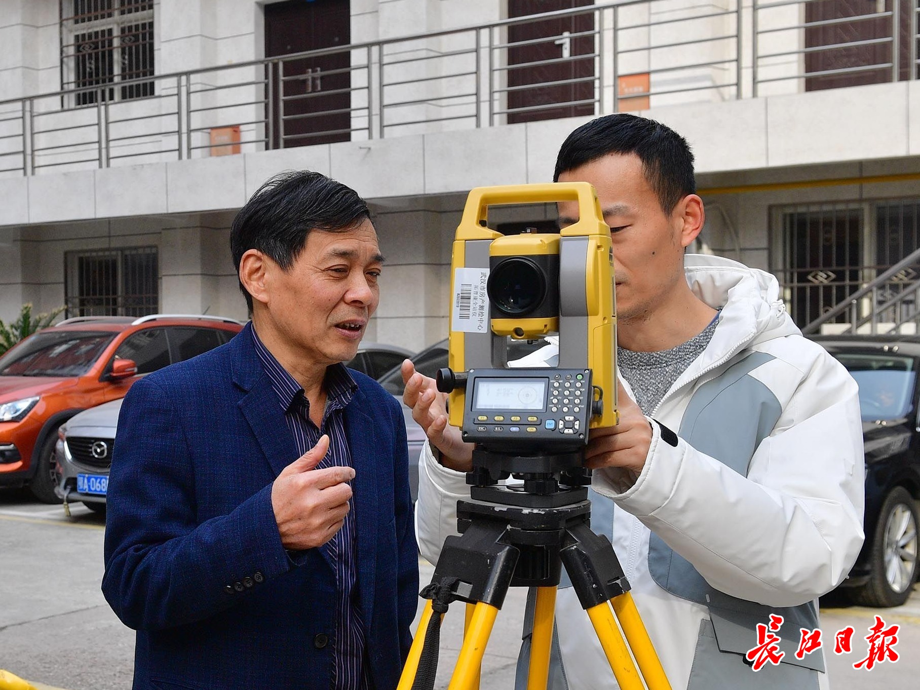 郑举汉(左)与技术团队一起在户外进行测绘。长江日报记者 李永刚 摄