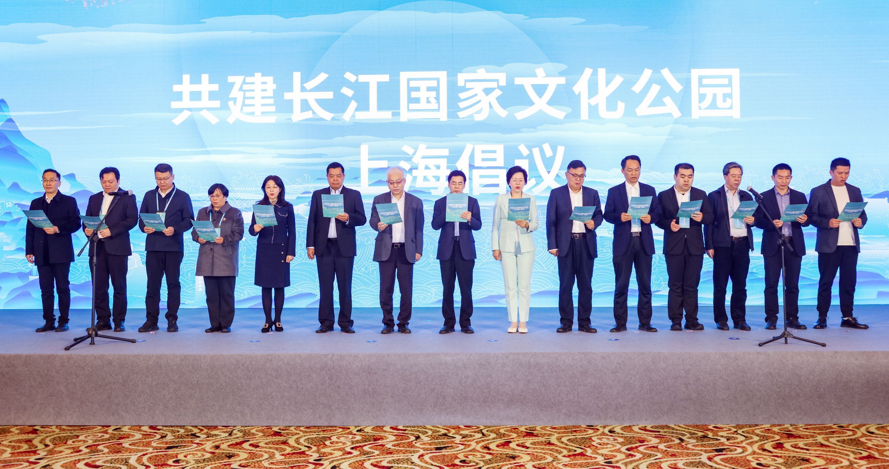 文化和旅游部资源开发司携长江国家文化公园沿线13个省区市文化和旅游部门共同发布《共建长江国家文化公园“上海倡议”》。王筝 摄