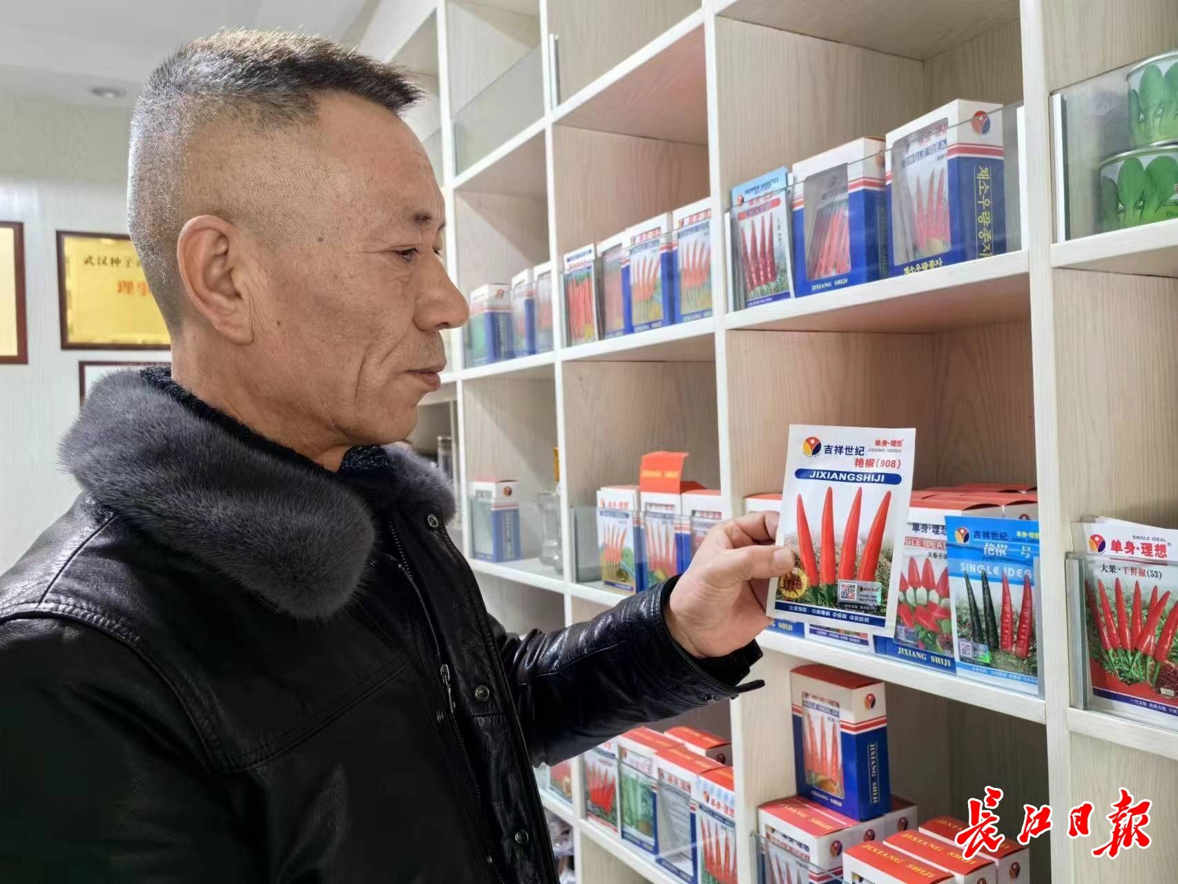 从武昌火车站地铁D1口出来,就是大东门种子市场。一条几百米的长街,聚集了80多家种子企业的门店。店内,白菜、西红柿、辣椒等各类种子,有的装在袋子里,有的装在罐子里,整齐排列在货架上向顾客展示。店外,一个个小推车上码放着多箱种子,工作人员正在帮客户装车。