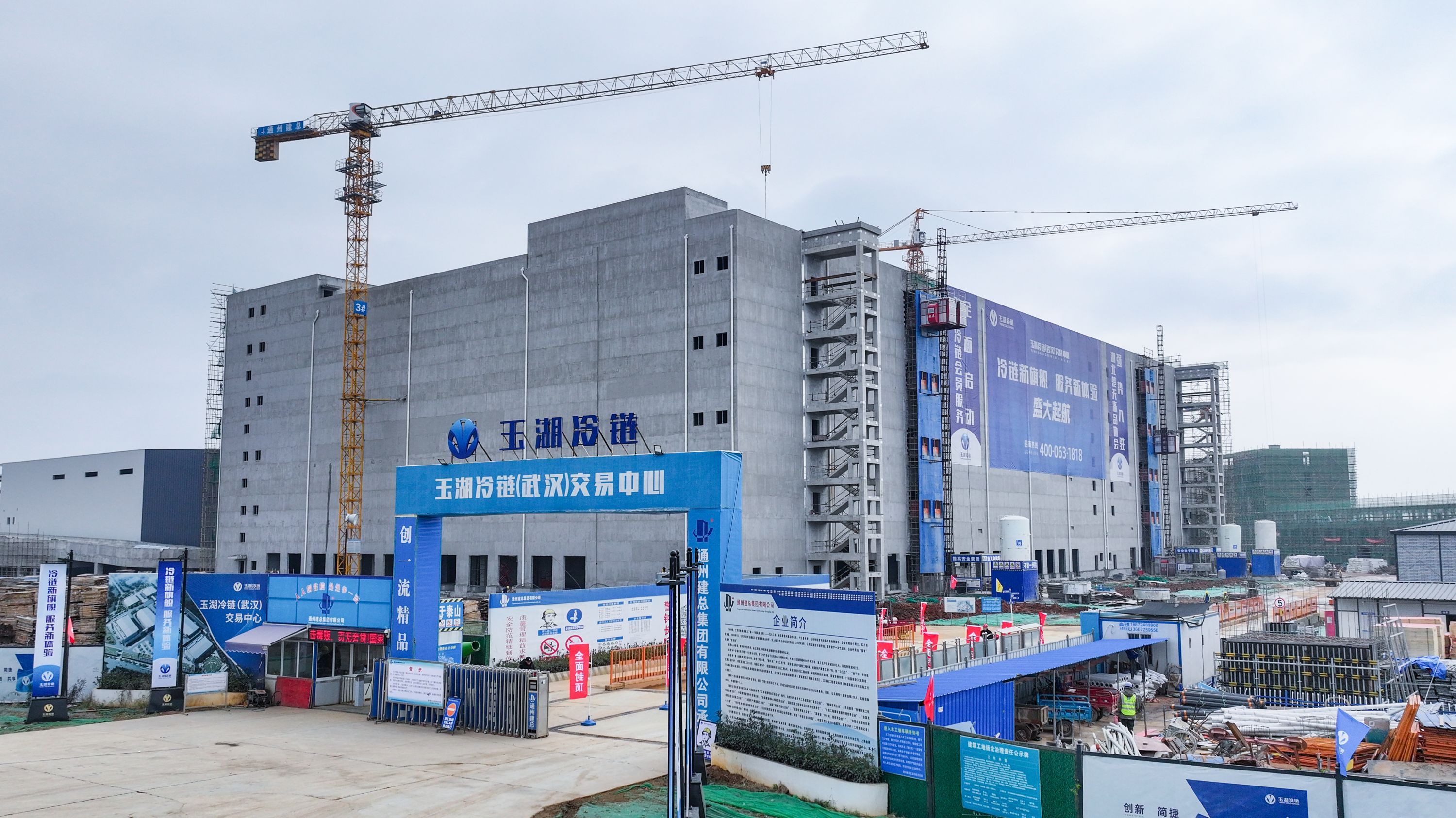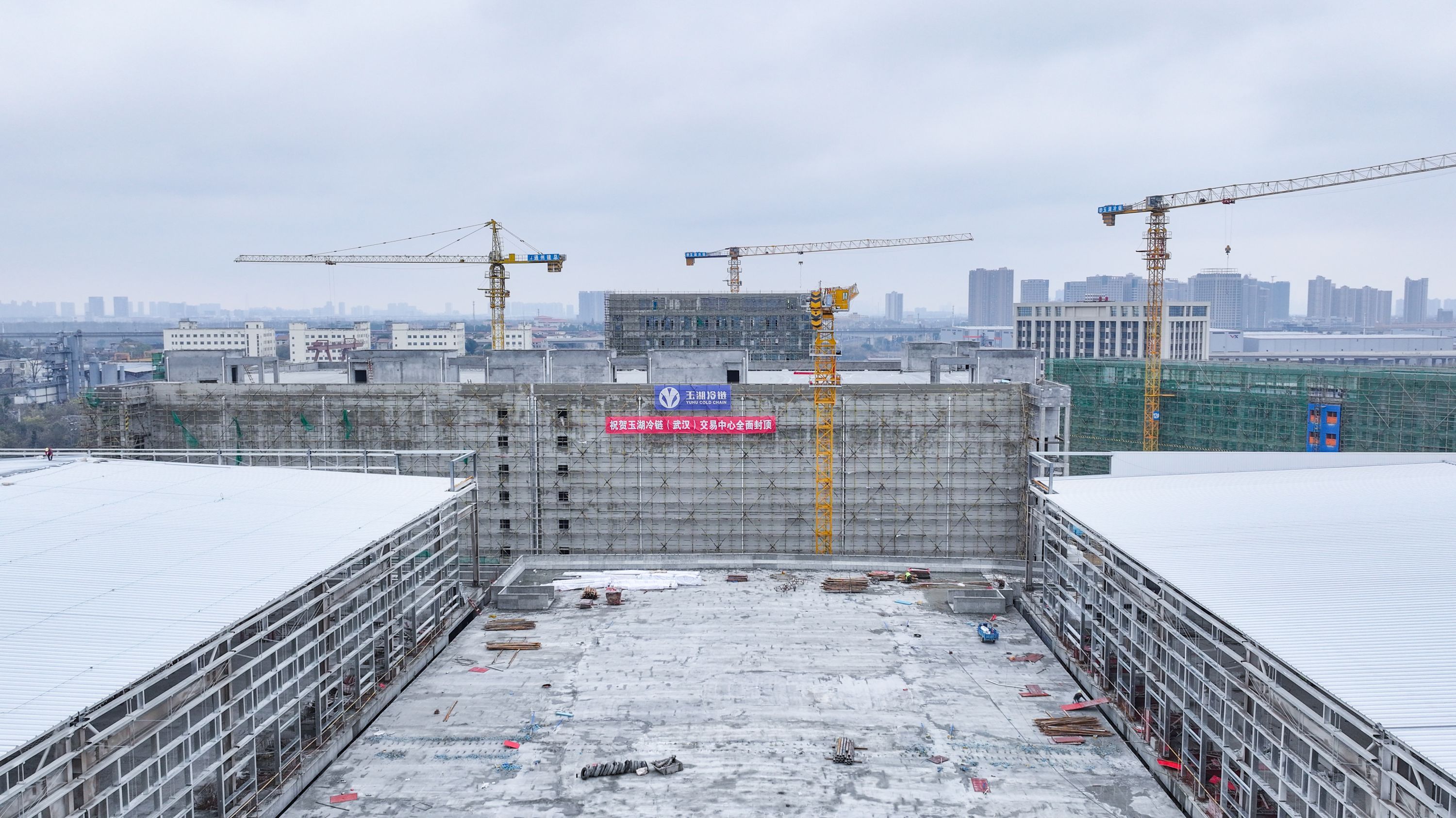 玉湖冷链(武汉)交易中心(以下简称武汉项目)全面封顶。通讯员彭新局 摄