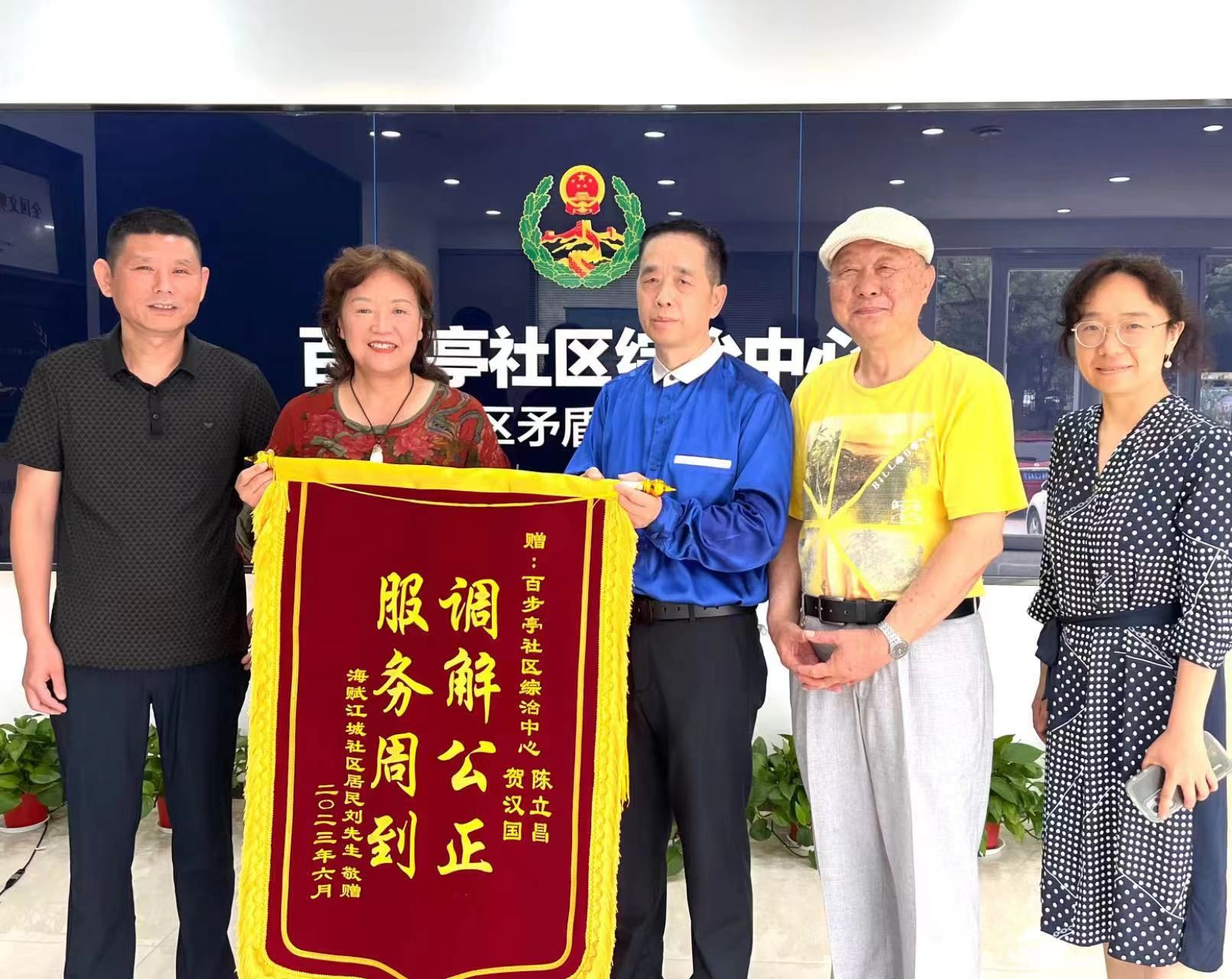居民向百步亭综治中心调解团队赠送锦旗。通讯员武政萱 摄