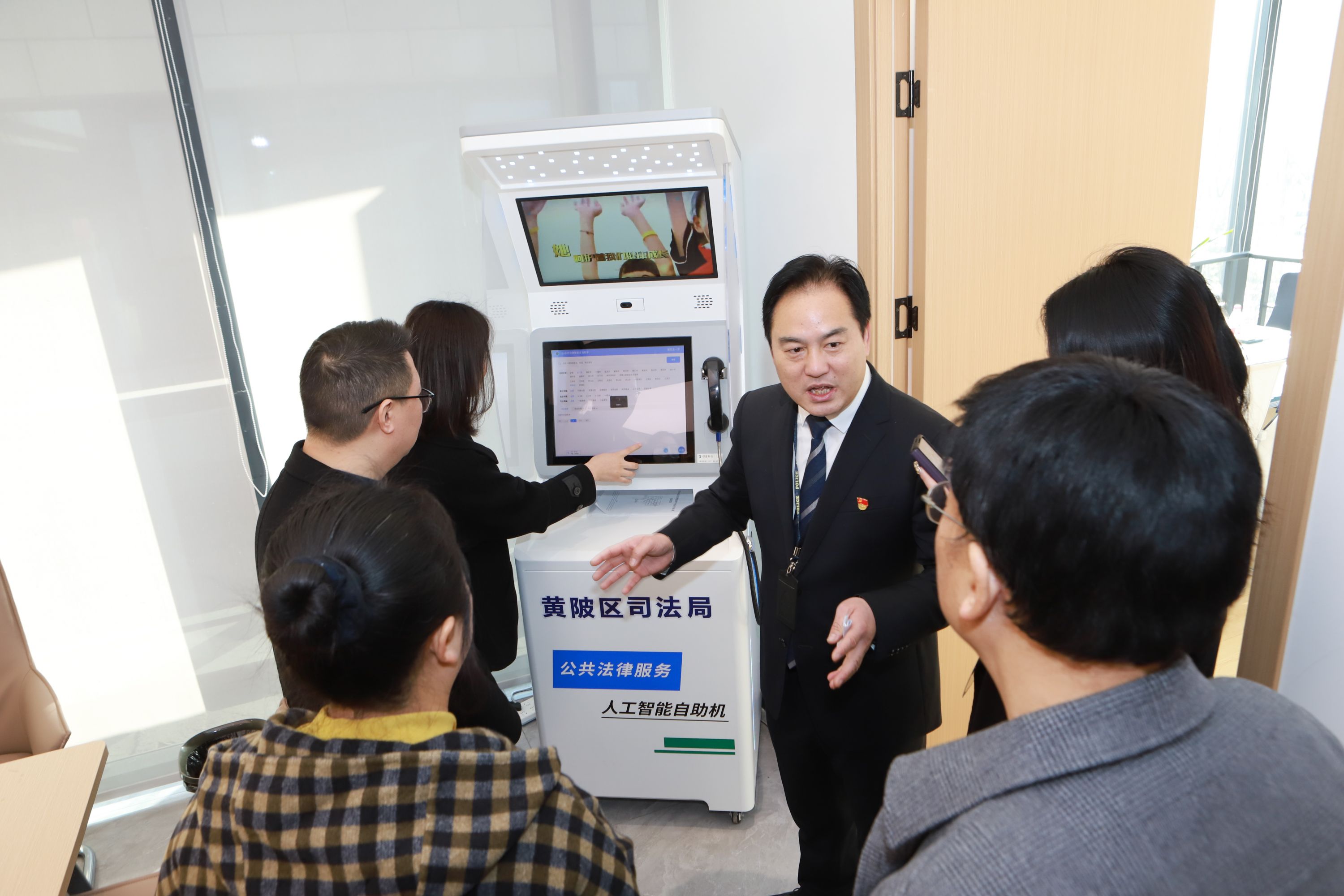 易庆洪在天汇社区向来访人员介绍公共法律服务自助机使用方法。通讯员武政萱 摄