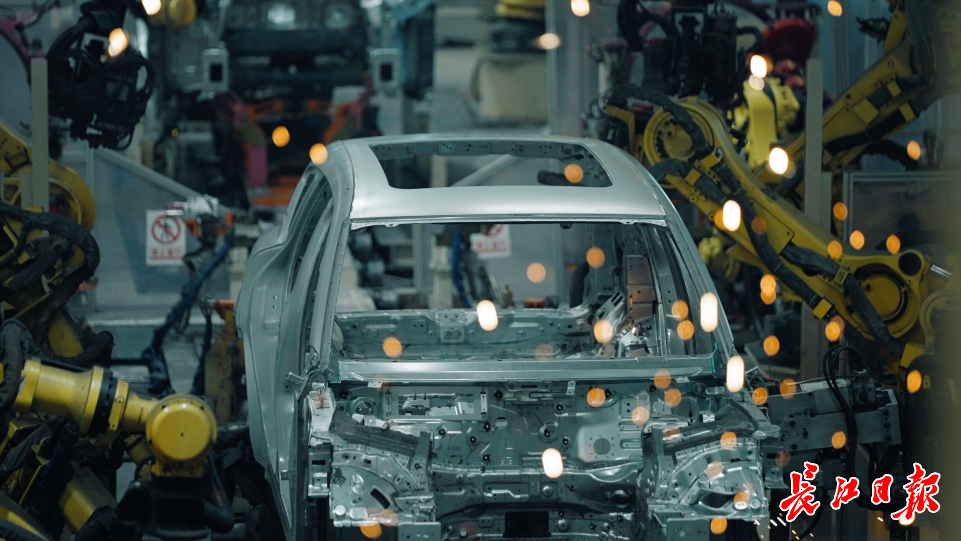 焊装车间内,自动搬运小车闪烁着绿灯,在画着黄线的地面井然有序地移动,将等待焊接的汽车零部件运送到指定工位。产线之上,一台台挥舞长臂、收放自如的机器人正在进行焊接工作,溅出的火花像“烟火”一般此起彼伏地绽放着。