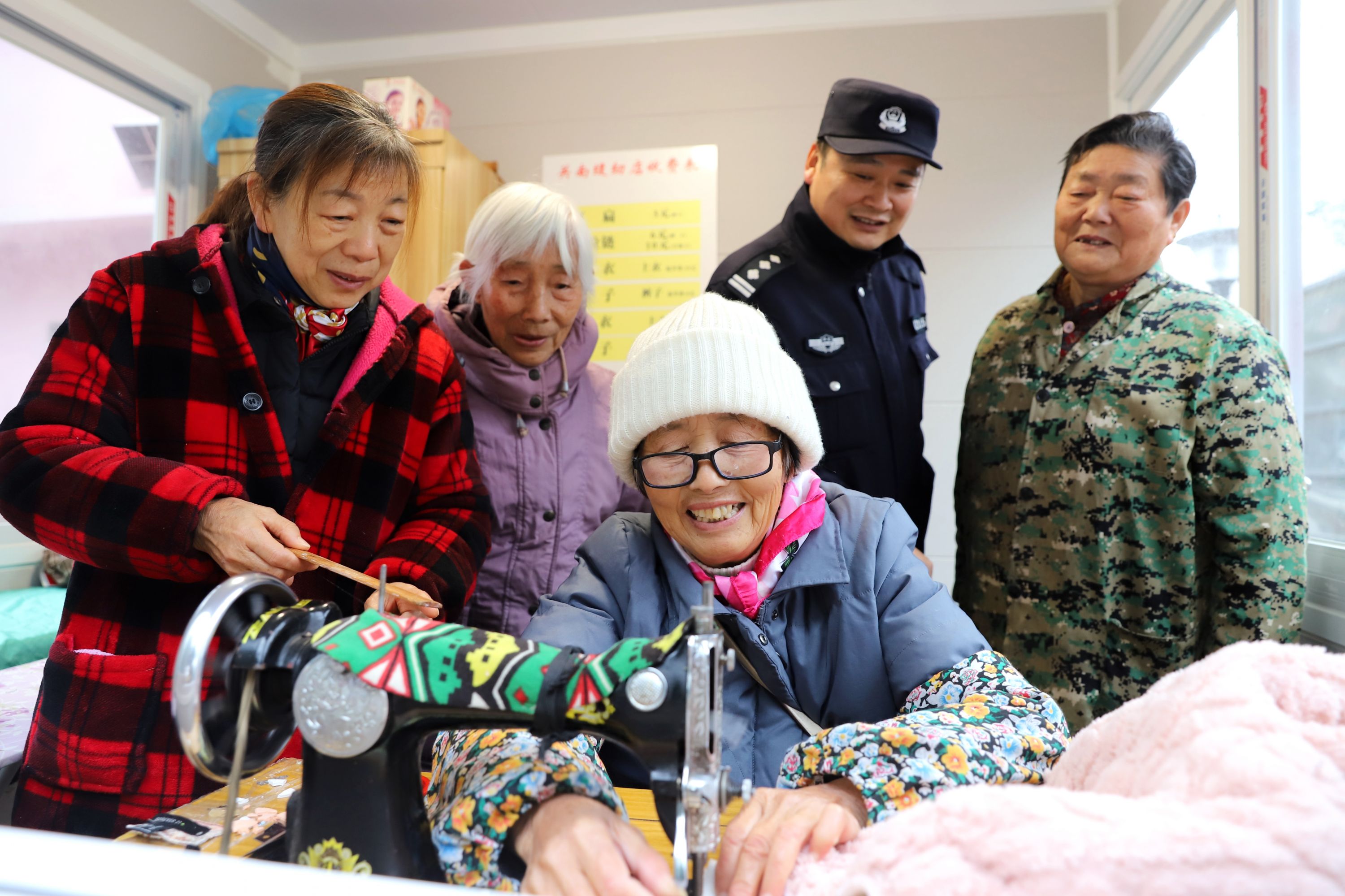 天渐凉,北风劲,入冬后的武汉伴随风雪,低温持续在0℃徘徊。然而,光谷关南社区一期13栋楼下的便民服务点内却暖意浓浓:这边是老邻居们笑呵呵聊着家长里短,那边是正踩着缝纫机给裤子打扁的谢奶奶。要搁以前呐,这么冷的天儿找她缝补衣服,还得爬个6楼。