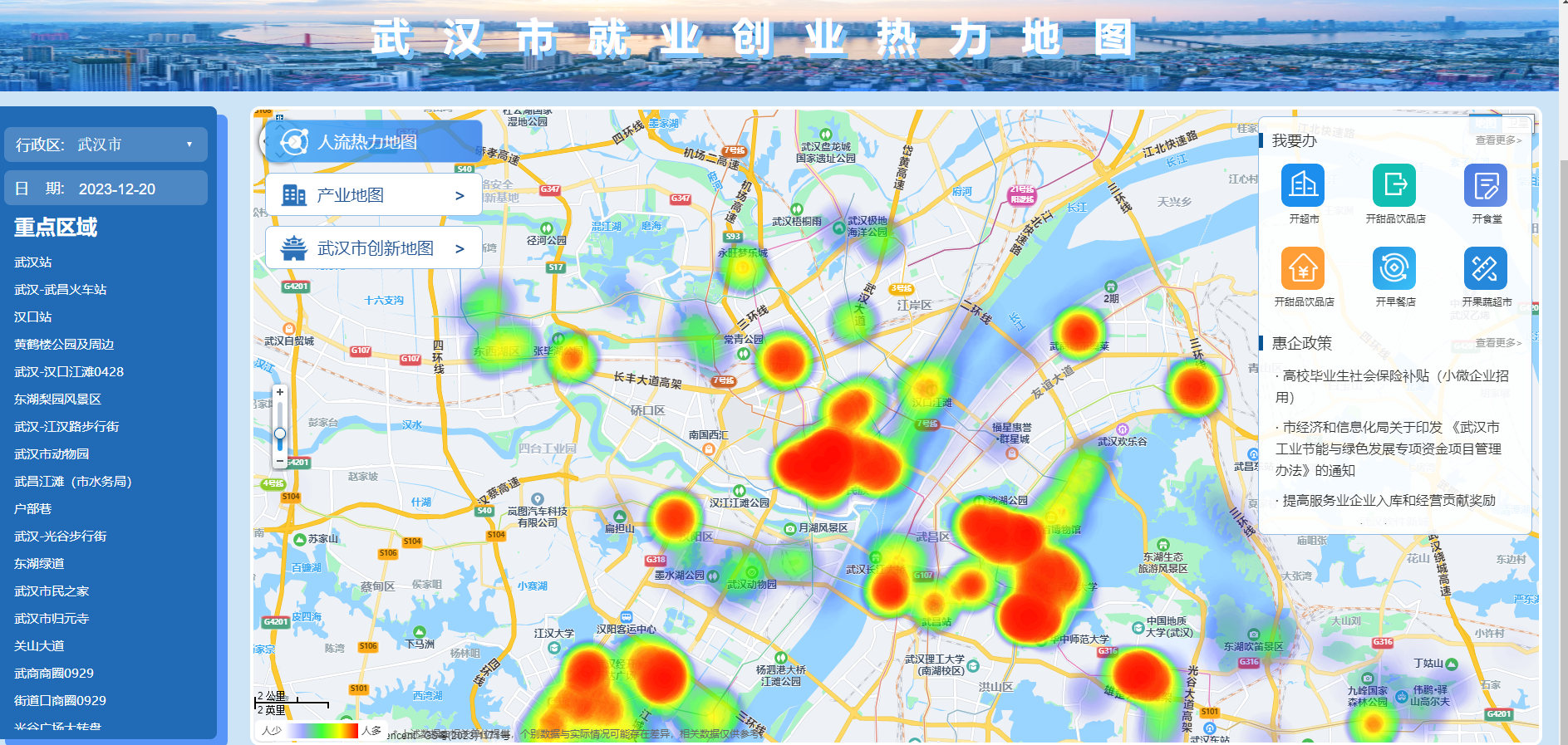 武汉市人民政府门户网站今年新上线的“武汉市就业创业热力地图”。