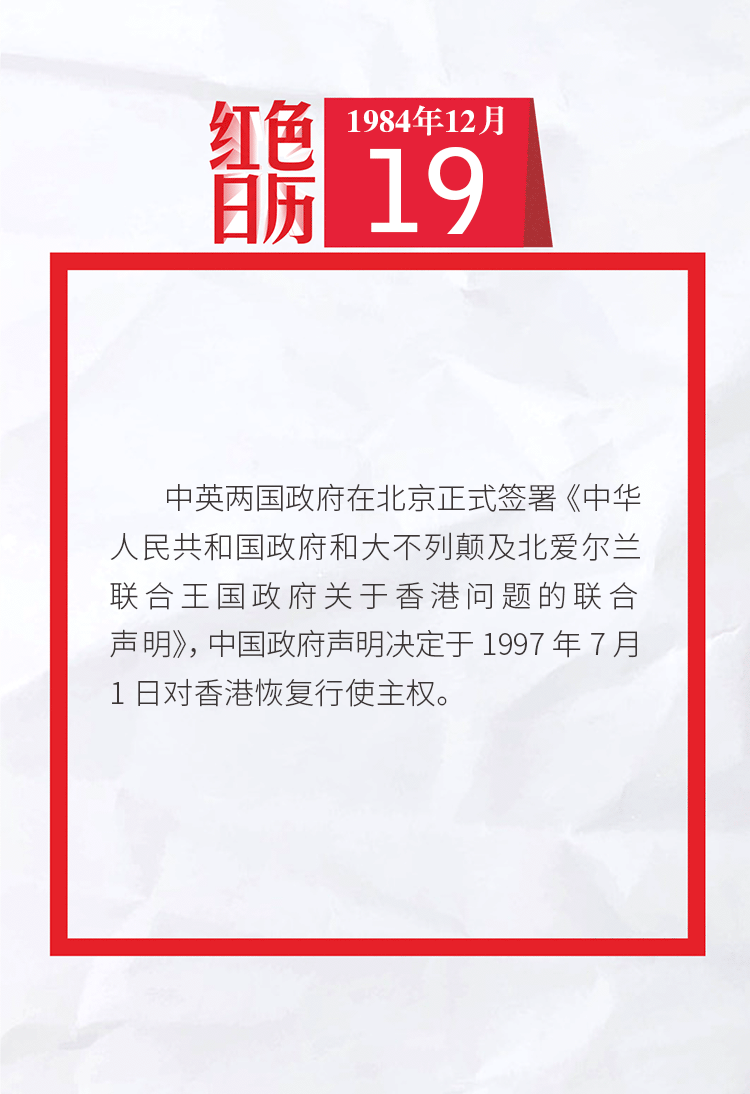 1984年的今天,中国政府声明决定于1997年7月1日对香港恢复行使主权|红色日历