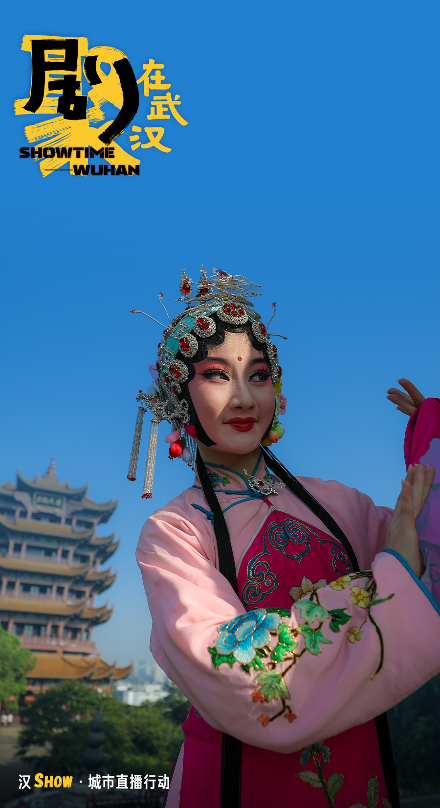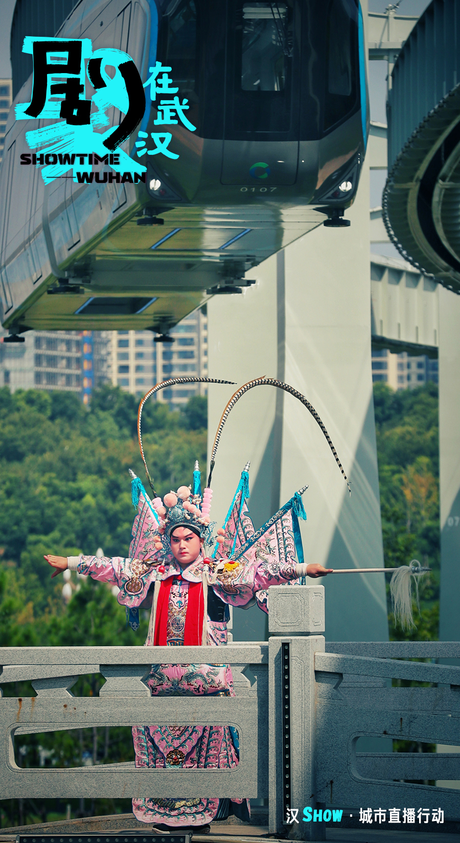 泼辣不羁的花旦、俊美威武的小生、端庄秀美的青衣——武汉汉剧院汉剧演员本色出演,在光谷空轨、光谷“马蹄莲”、黄鹤楼景区、江汉关博物馆、东湖碧潭观鱼、平和坊等城市地标的惊艳亮相,映照出武汉“天生江湖气魄,自在人间烟火”的独特气质。