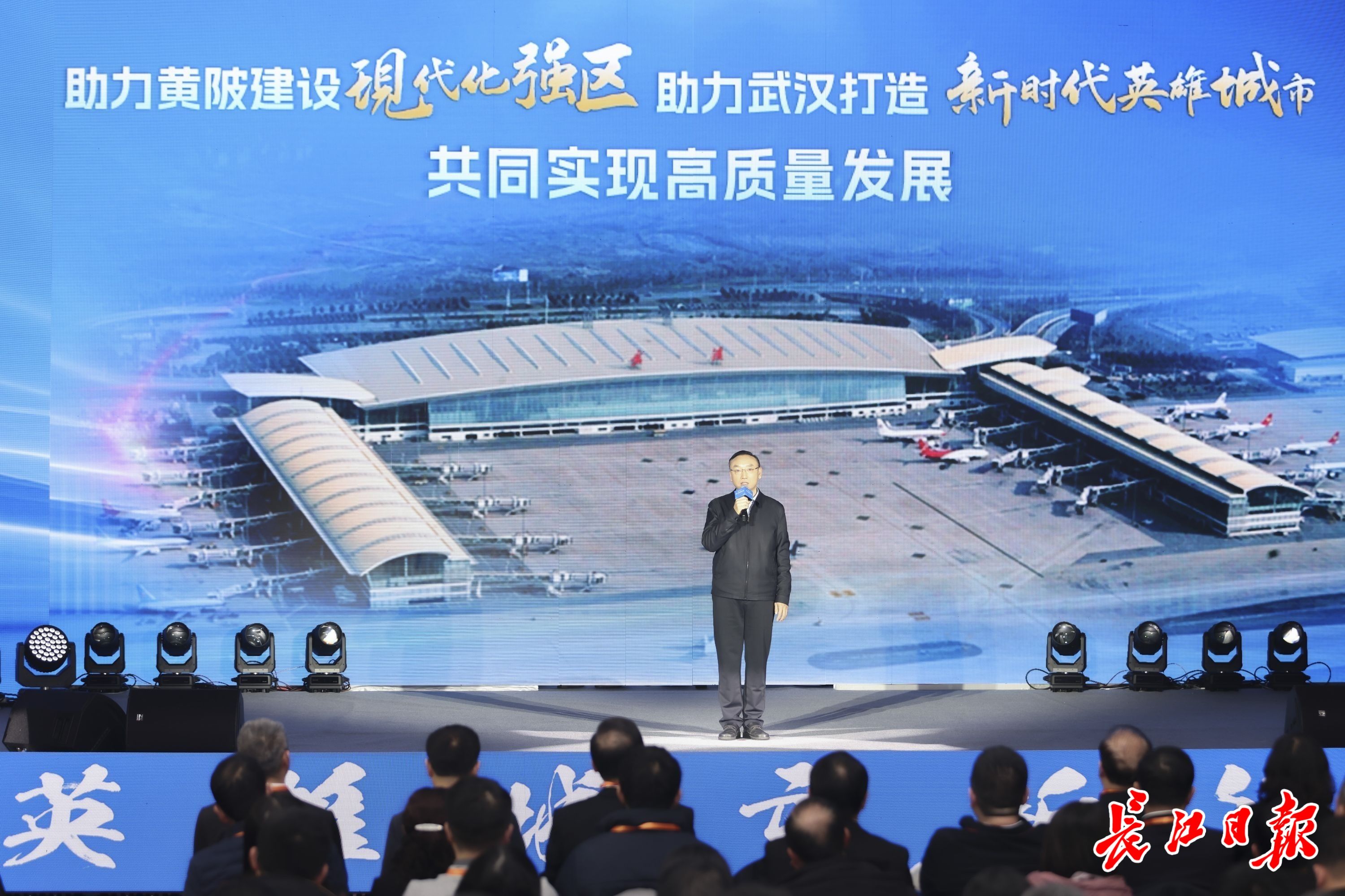 12月20日,“英雄城市新征程”系列形势政策报告会黄陂区专场举行,湖北机场集团党委书记、董事长李忠禄作报告。长江日报记者胡冬冬 摄