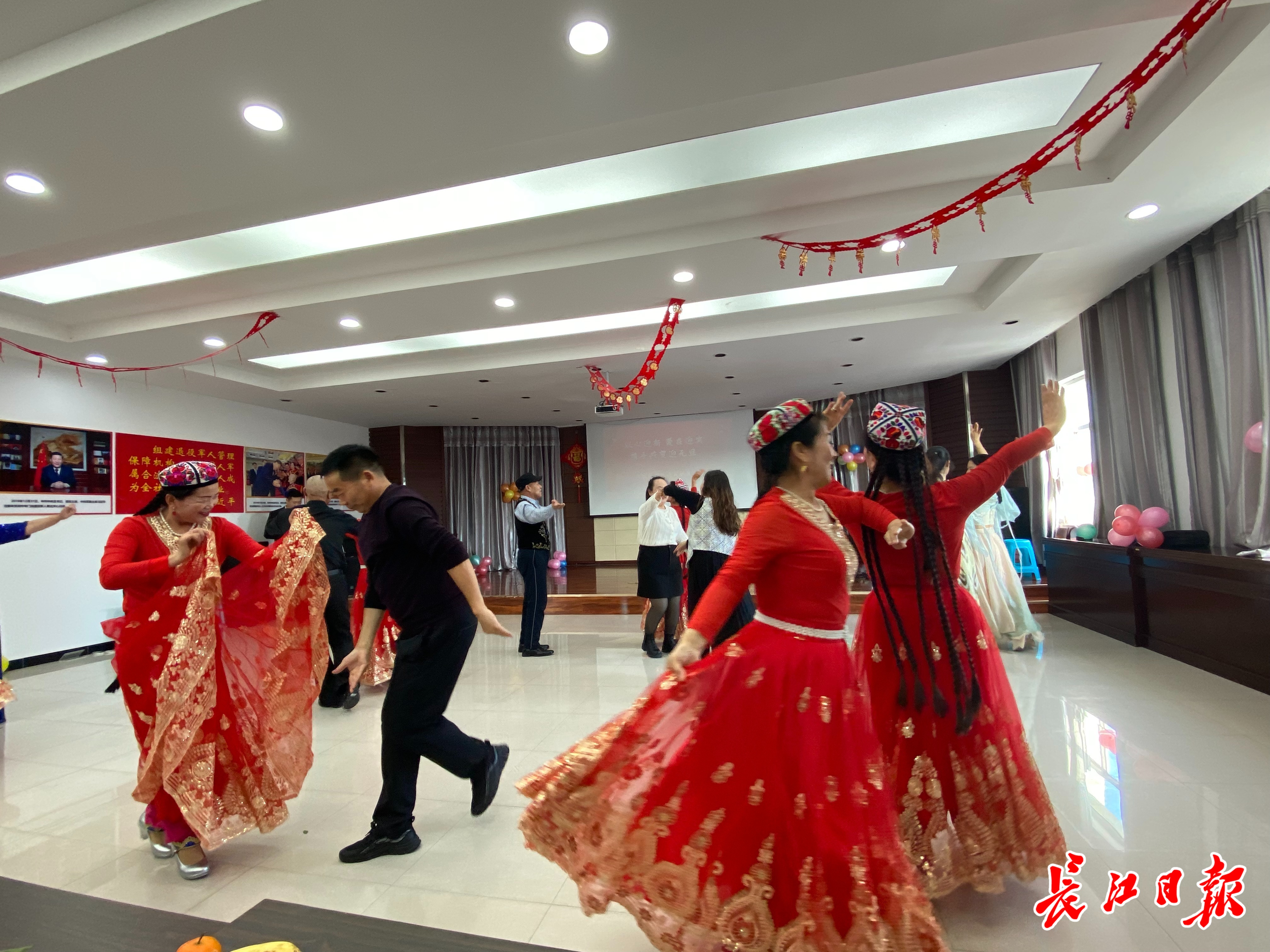 “我们新疆好地方,天南地北一家人。”博乐市迎宾社区群干,邀请武汉援疆干部人才代表、居民代表走上舞台。一曲新疆舞蹈《甜蜜》将活动推向高潮。