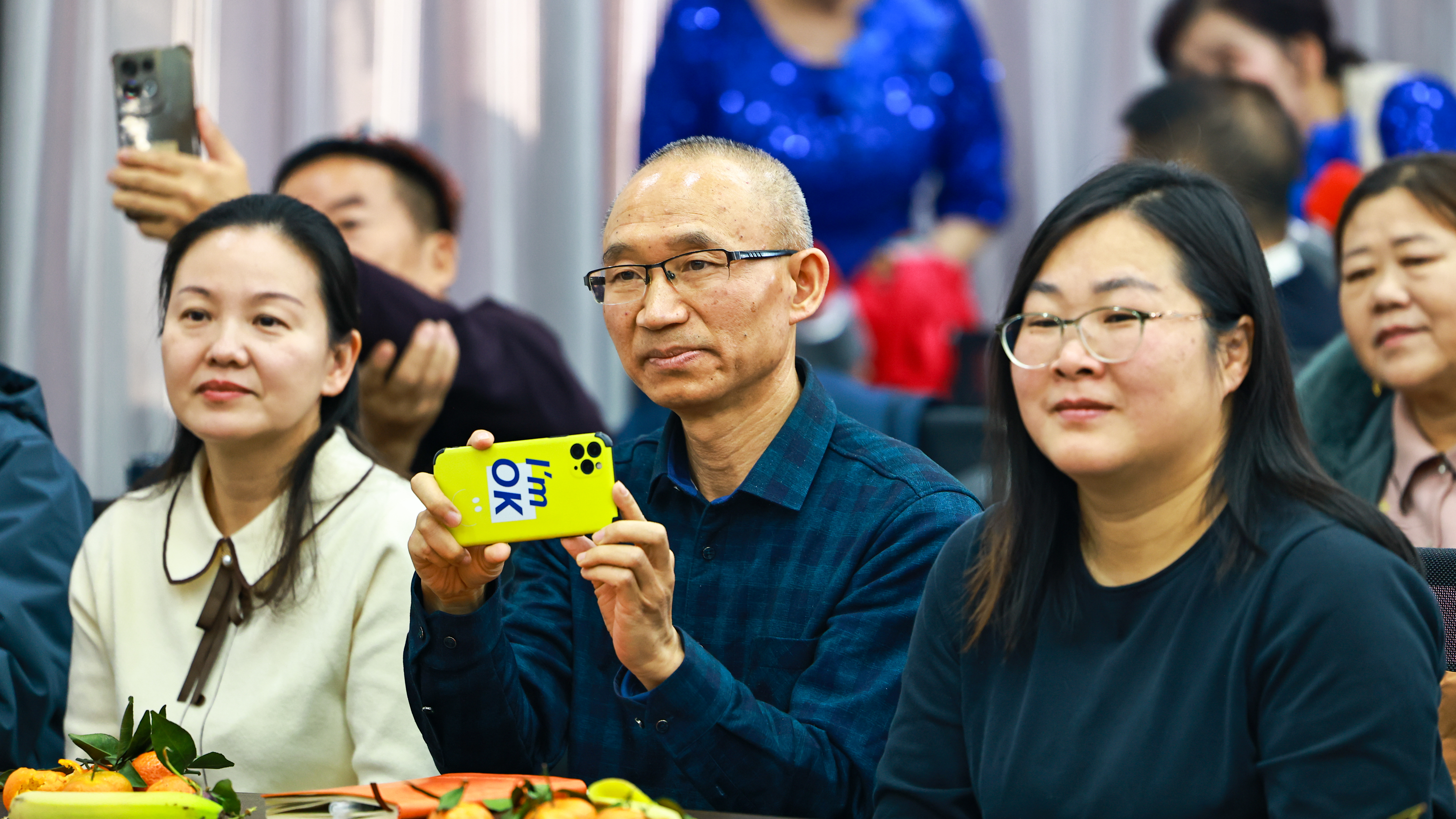 在武汉援疆工作队与博乐市迎宾社区联手举办的迎新联欢会上,精彩的表演吸引大家拿出手机拍摄。 新疆博乐市融媒体中心记者陈桂林 摄