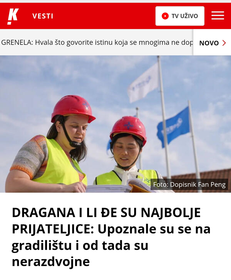 塞尔维亚两大主流媒体国家广播电视台PTC《za dijasporu》栏目和《快报》转载发布了长江日报《“我的沉默,她能懂”——记塞尔维亚E763高速公路建设中的中塞好闺蜜》报道,点赞中国建设者在塞尔维亚做出的贡献,也突出展现了中国工程师李杰和塞尔维亚商务经理李娜的闺蜜情谊。