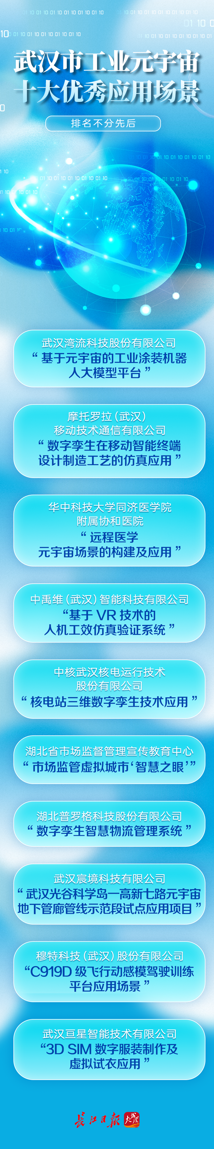 近日,武汉市经信局发布2023年武汉市工业元宇宙十大优秀应用场景名单。这是武汉首次征集并发布这一领域应用场景。