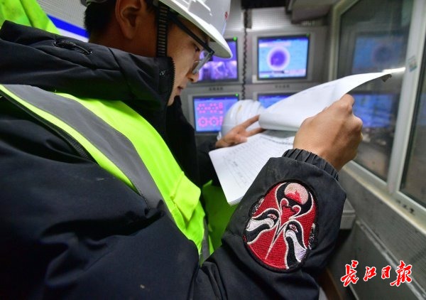 当天,记者在盾构机驾驶室看到,一名技术人员穿的羽绒服右袖缝了一个京剧脸谱,十分显眼。原来,这名年轻人叫岳开,是中铁一局技术员,黄冈人。“因为袖子在地下施工时被挂破了,所以才找了一家裁缝店帮忙缝了一个京剧脸谱。”他笑说,自己平时负责技术指导和质量控制,以前在广州建地铁,这次回到家乡建地铁,感觉格外不一样,有种亲切感。“马上就到元旦了。因为盾构已经始发,所以元旦照常施工,希望为家乡建设贡献力量。”