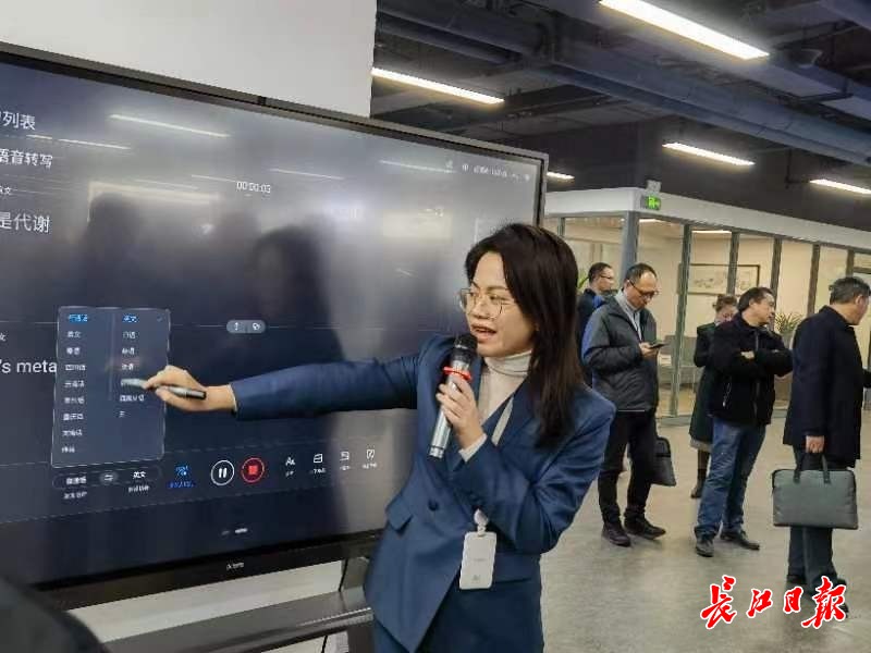 科大讯飞相关负责人介绍最新办公应用产品。长江日报记者 余康庭 摄