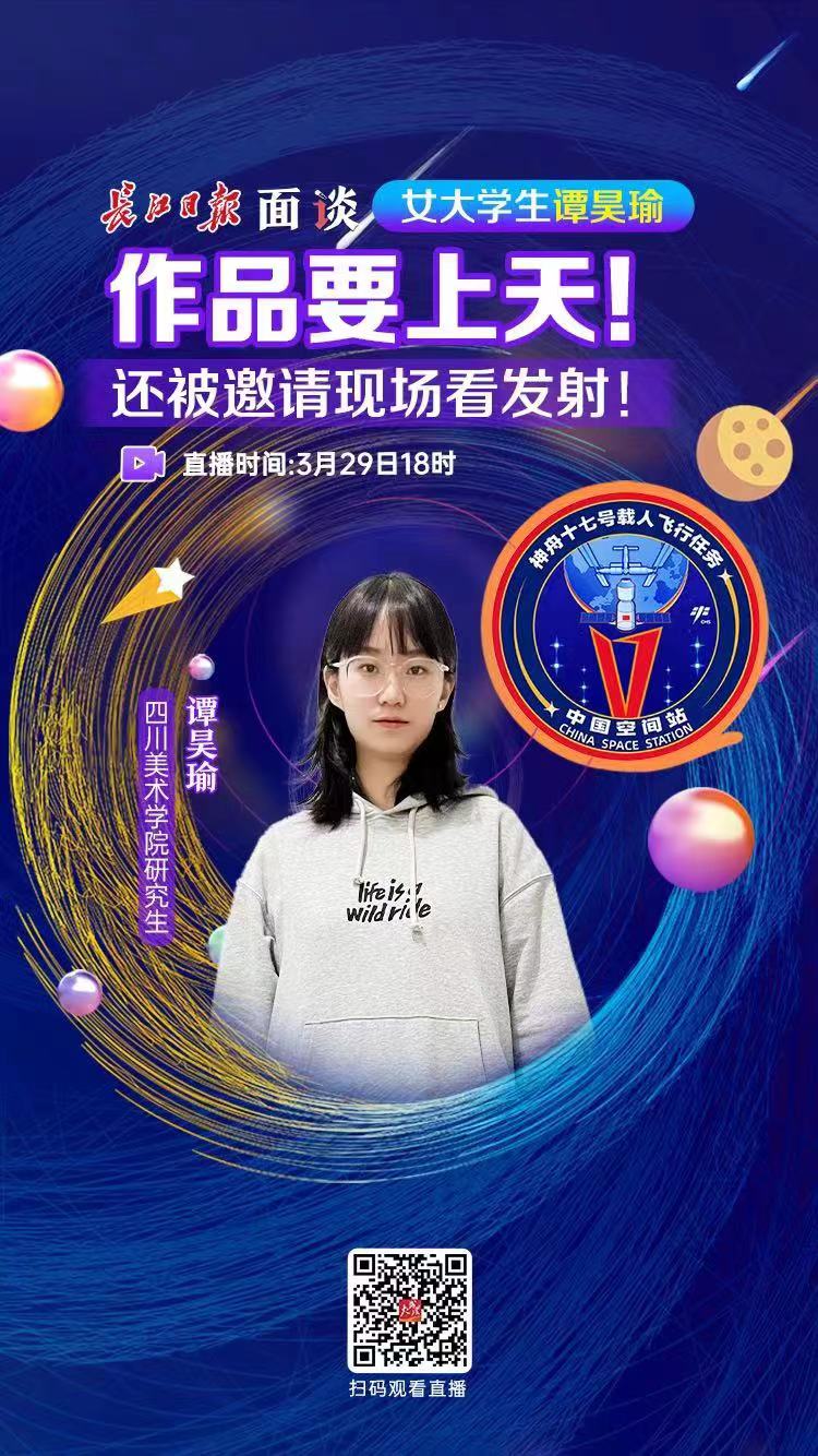 中国载人航天工程办公室发布2023年度天舟六号飞行任务、神舟十六号载人飞行任务、神舟十七号载人飞行任务,三次飞行任务标识。其中,神舟十七号载人飞行任务标识是由四川美术学院研究生谭昊瑜设计的。谭昊瑜做客《面谈》分享设计理念和设计过程。