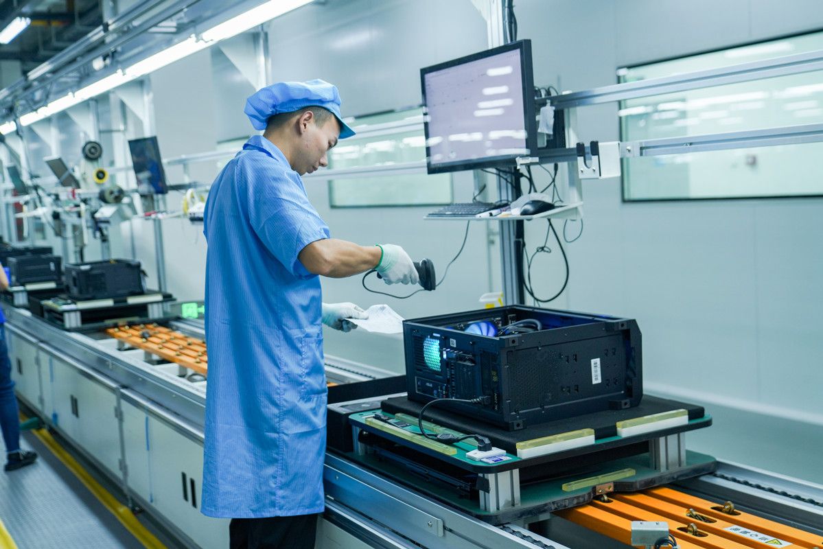 在攀升科技园智能工厂产线上,工作人员正在测试产品部件。通讯员单瓅供图