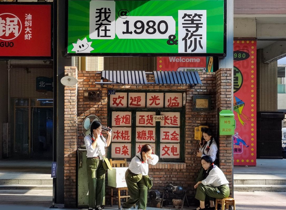 老式手摇爆米花机、“汉口百货商店”“人民照相馆”……近日,位于汉口北国际贸易城的武汉“1980”街区,一个个怀旧的场景吸引前来打卡的市民和游客。