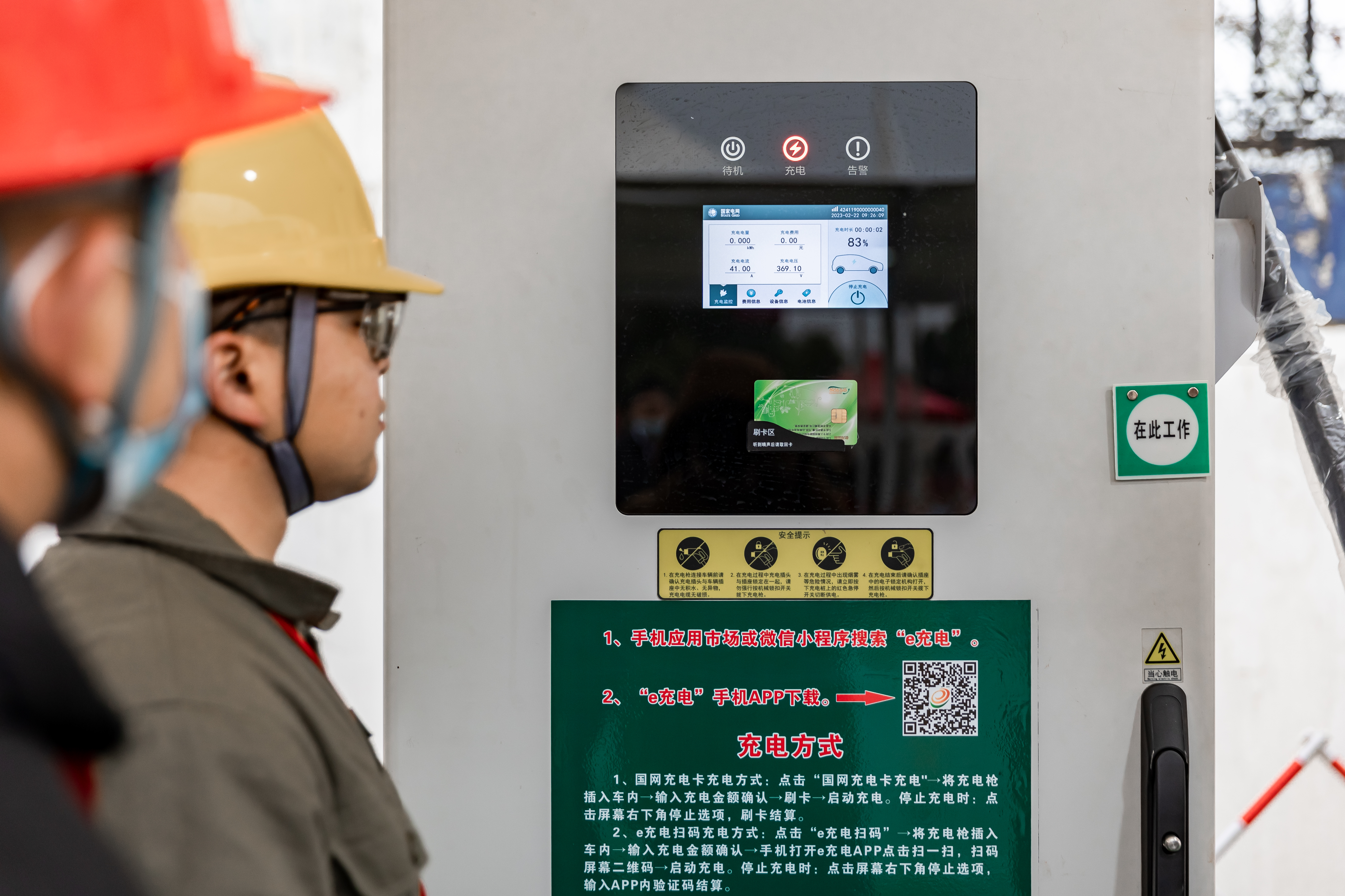 供电人员正在检查充换电设施。 (国网湖北电力公司供图)