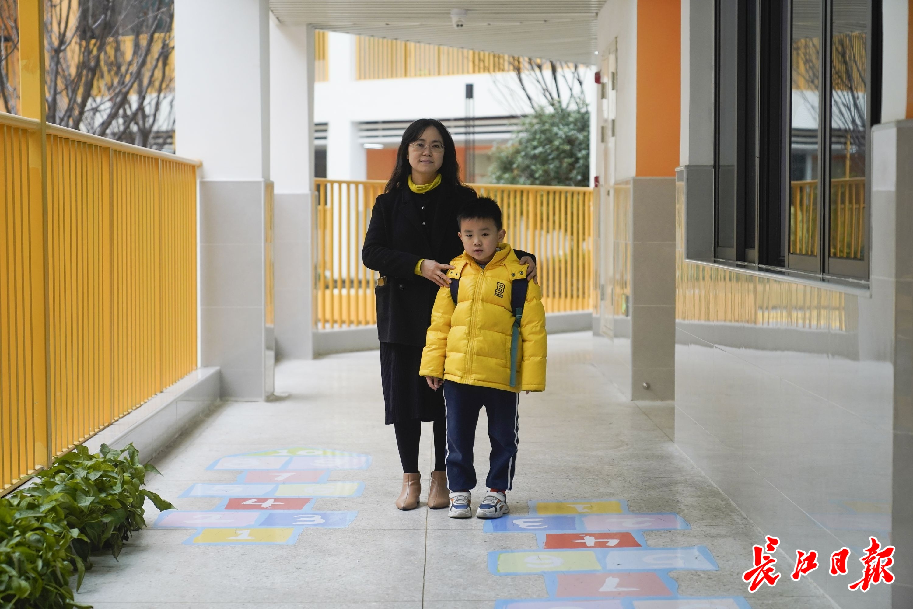 应小华和儿子刘应翰在学校的走廊上合影。长江日报记者彭年 摄
