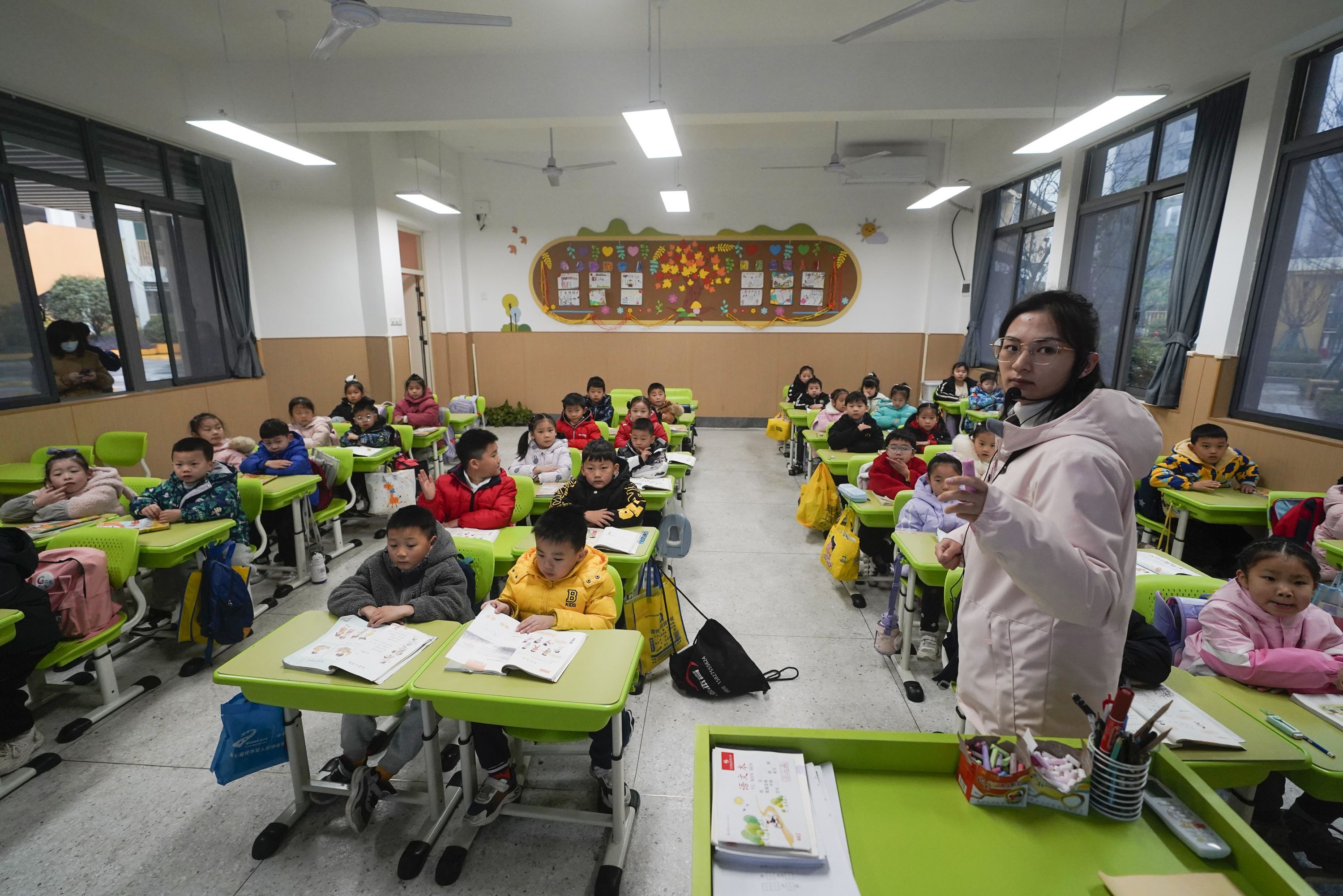 钟家村方岛小学一年级学生在教室里上课。长江日报记者彭年 摄