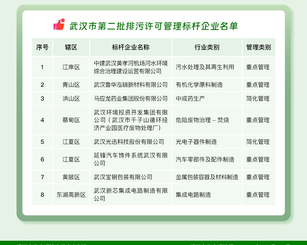 武汉市第二批排污许可管理标杆企业。