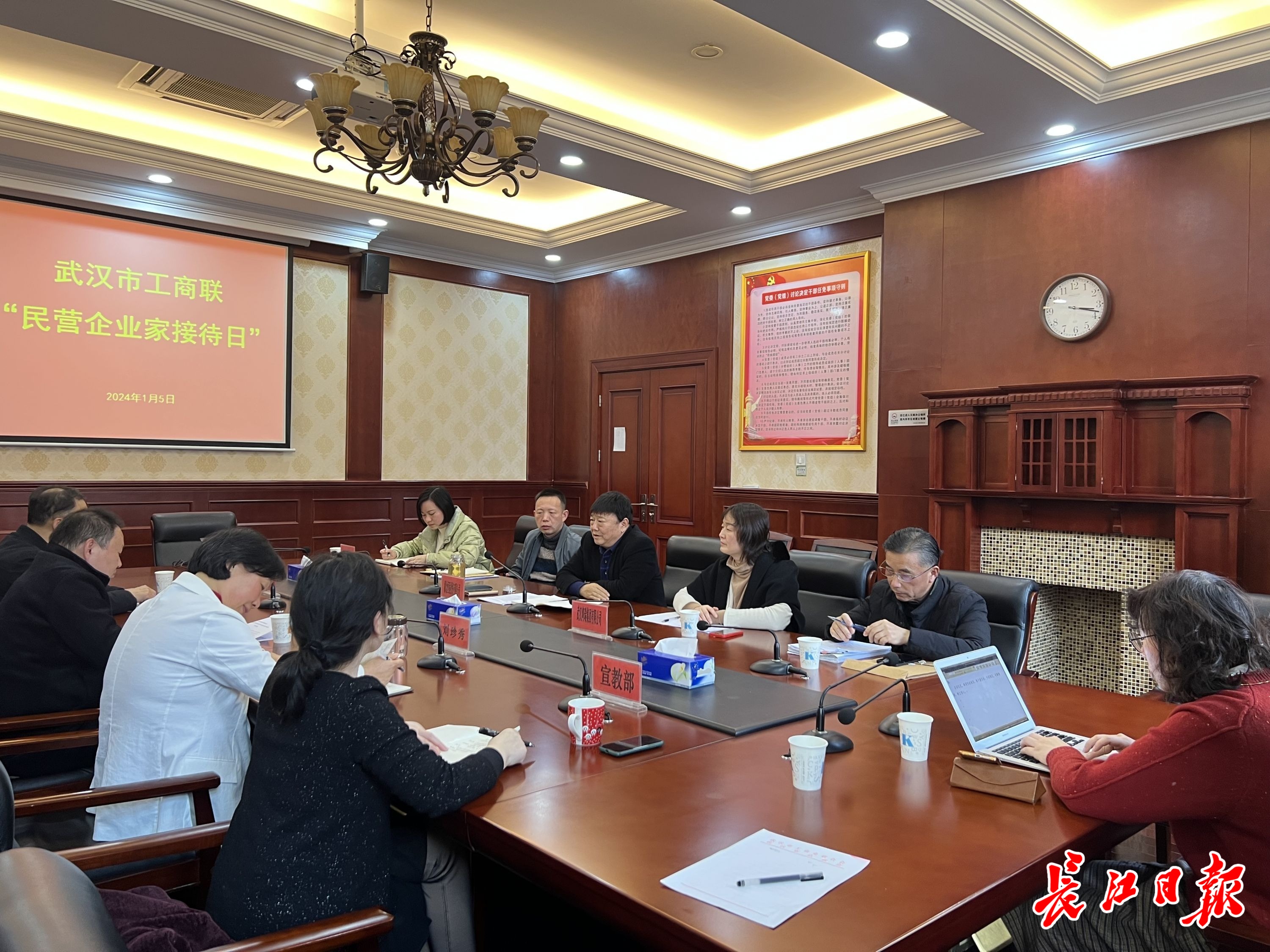 长江日报大武汉客户端1月6日讯 “感谢市工商联为我们搭建的发声平台。”为民营企业办实事解难题,1月5日,首场“民营企业家接待日”在武汉市工商联举行,企业家带着难题登门拜访,与相关部门面对面沟通。