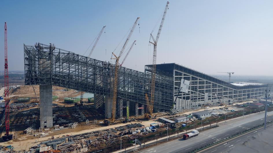 甘露山文创城雪世界钢结构完成封顶。 通讯员曹骏 摄