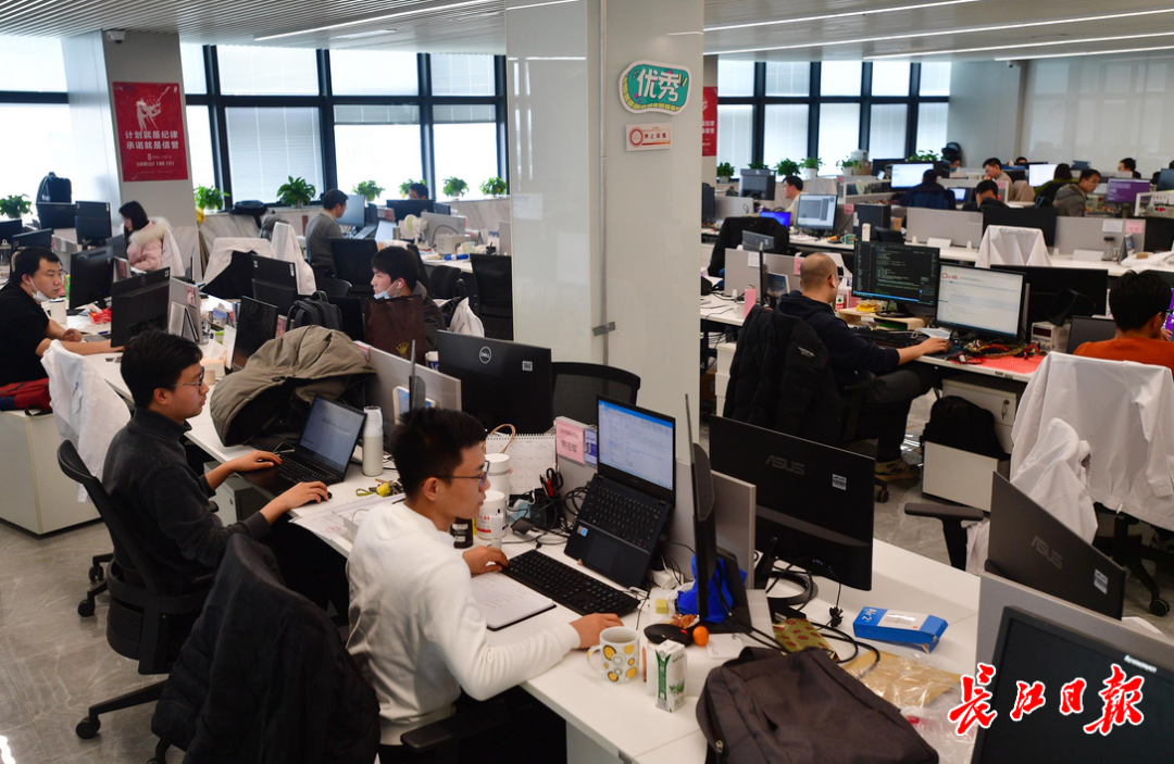 在武汉经开区人工智能科技园,东软睿驰汽车技术公司员工正在工作。长江日报记者李永刚 摄