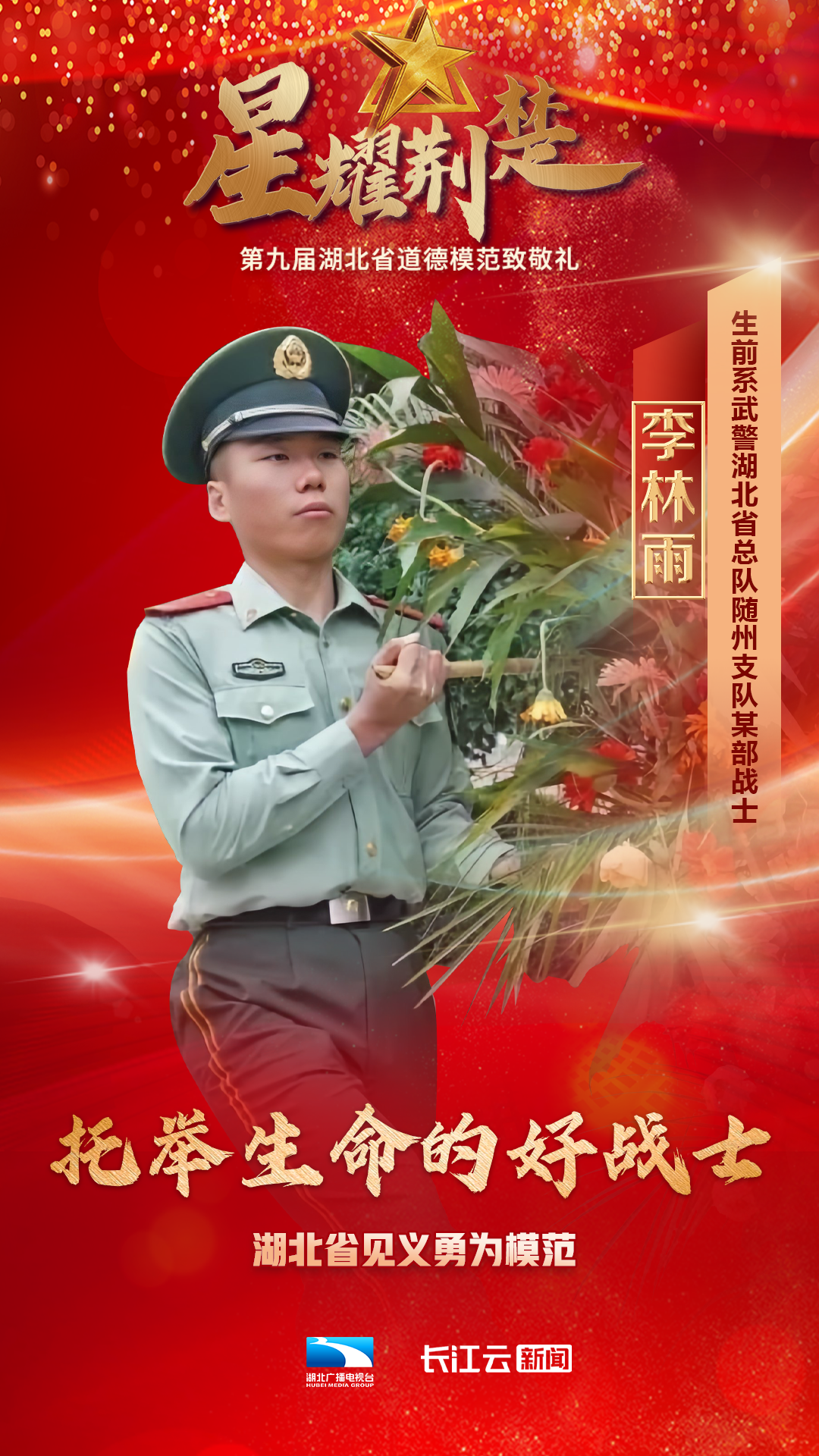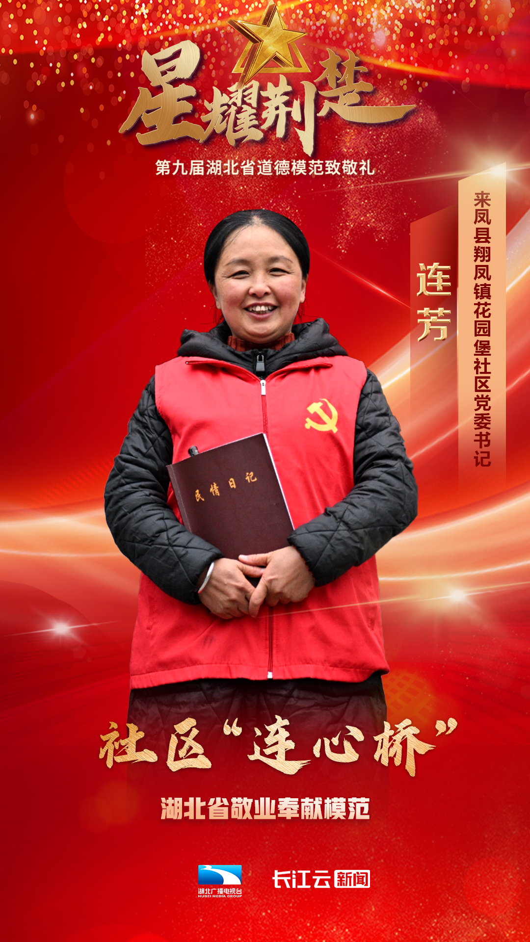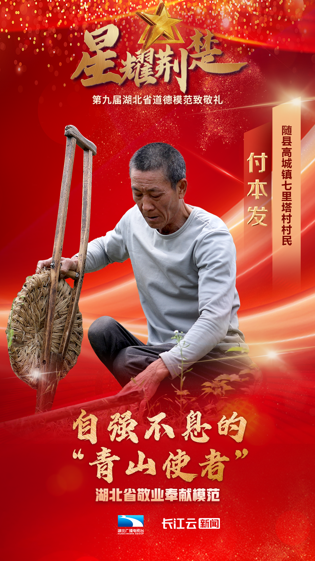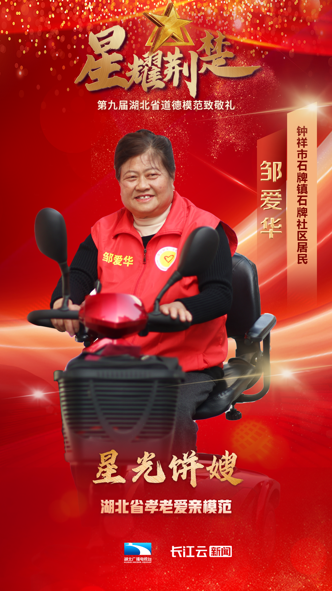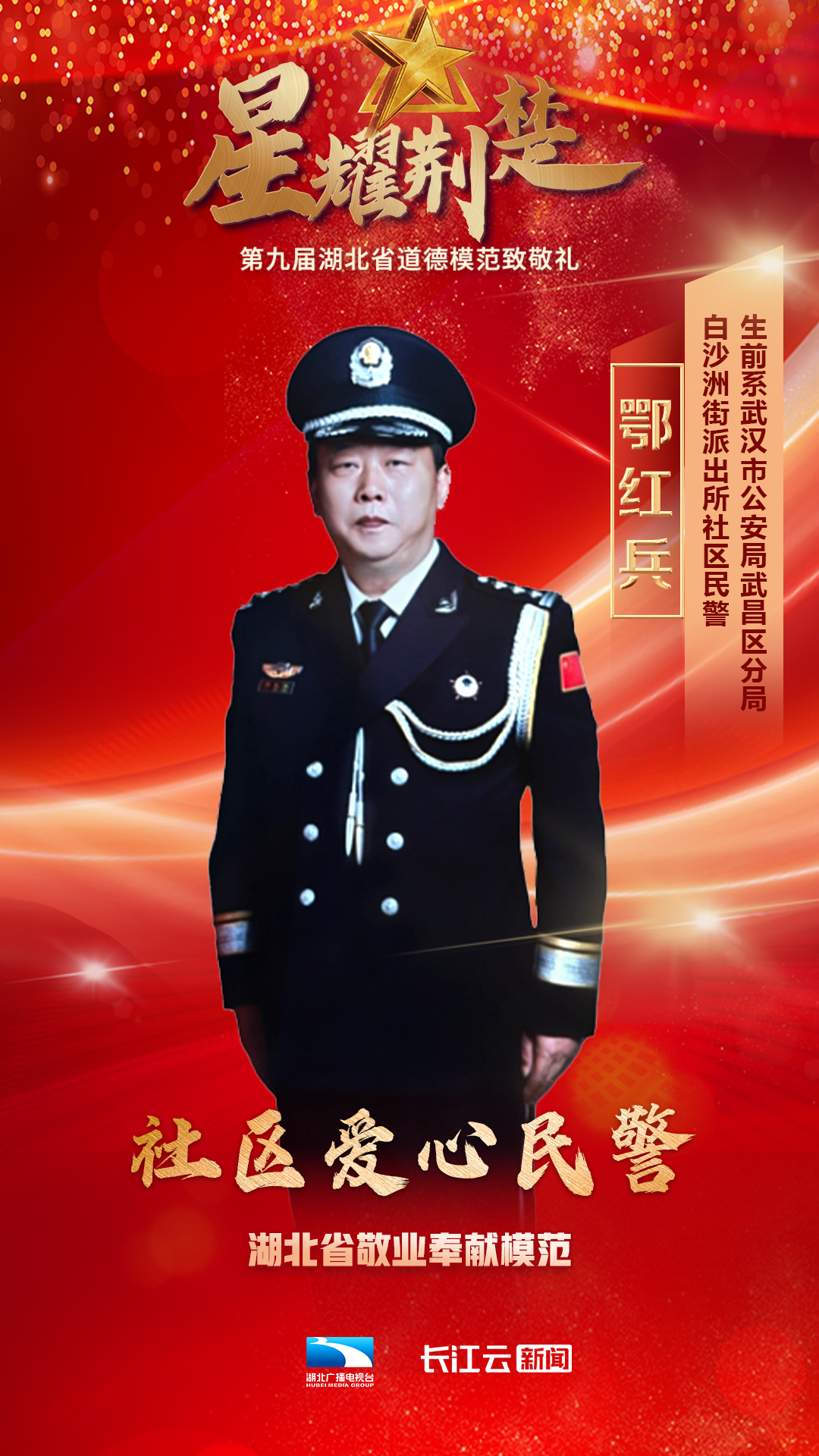 1月10号,由省委宣传部、省文明办、省总工会、团省委、省妇联、省人社厅主办、湖北广播电视台新闻中心承办的星耀荆楚——第九届湖北省道德模范致敬礼在武汉举行,会上公布了第九届湖北省道德模范名单,授予邓兰舟等17名同志、追授王明林等3名同志“湖北省道德模范”称号。