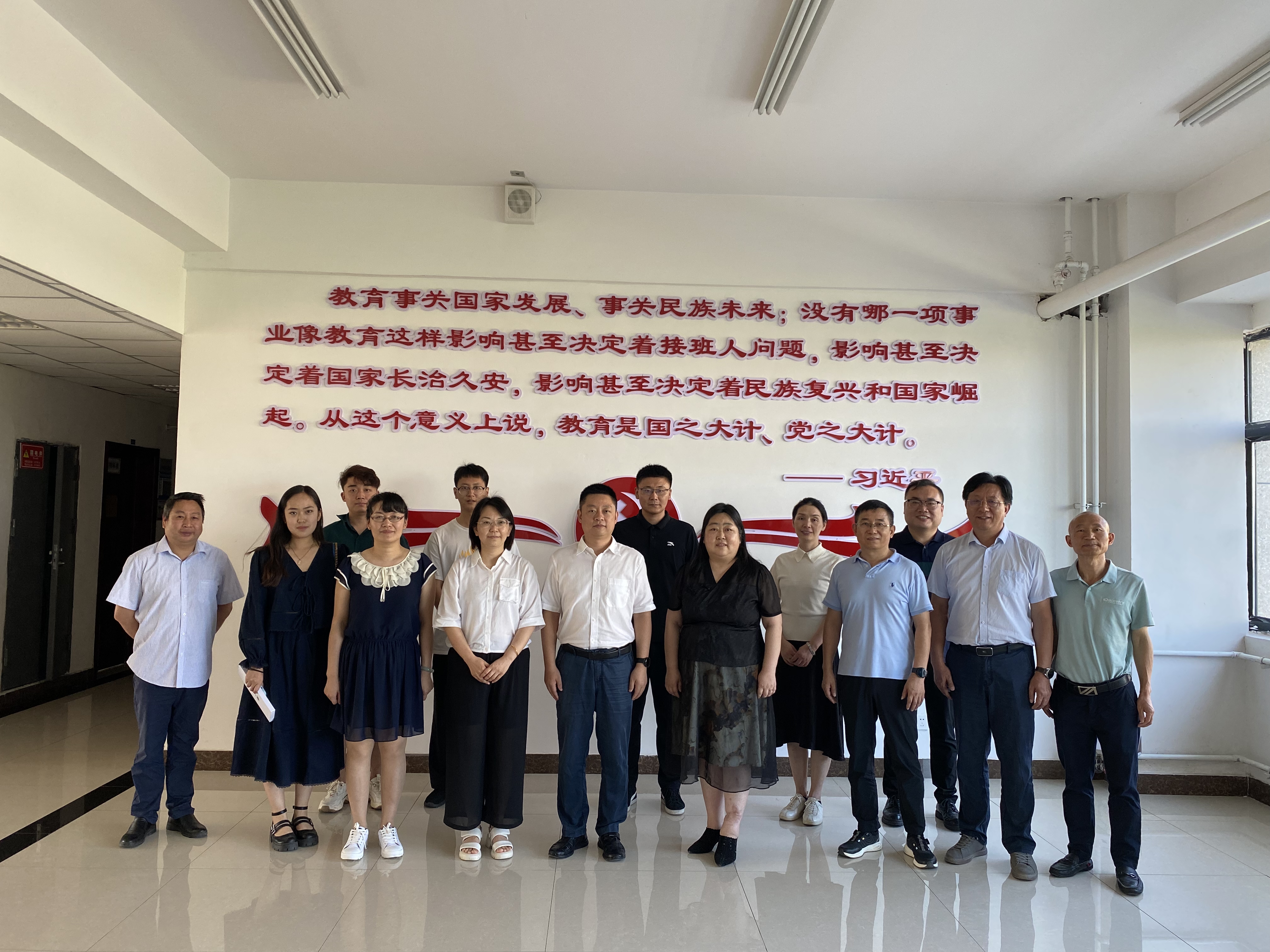 江汉大学调研组,在2023年暑期,来到新疆博尔塔拉蒙古自治州,与博州教育局、博乐市教育局相关领导,以及生源学校负责人、校友代表座谈后合影。武汉援疆工作队 供图