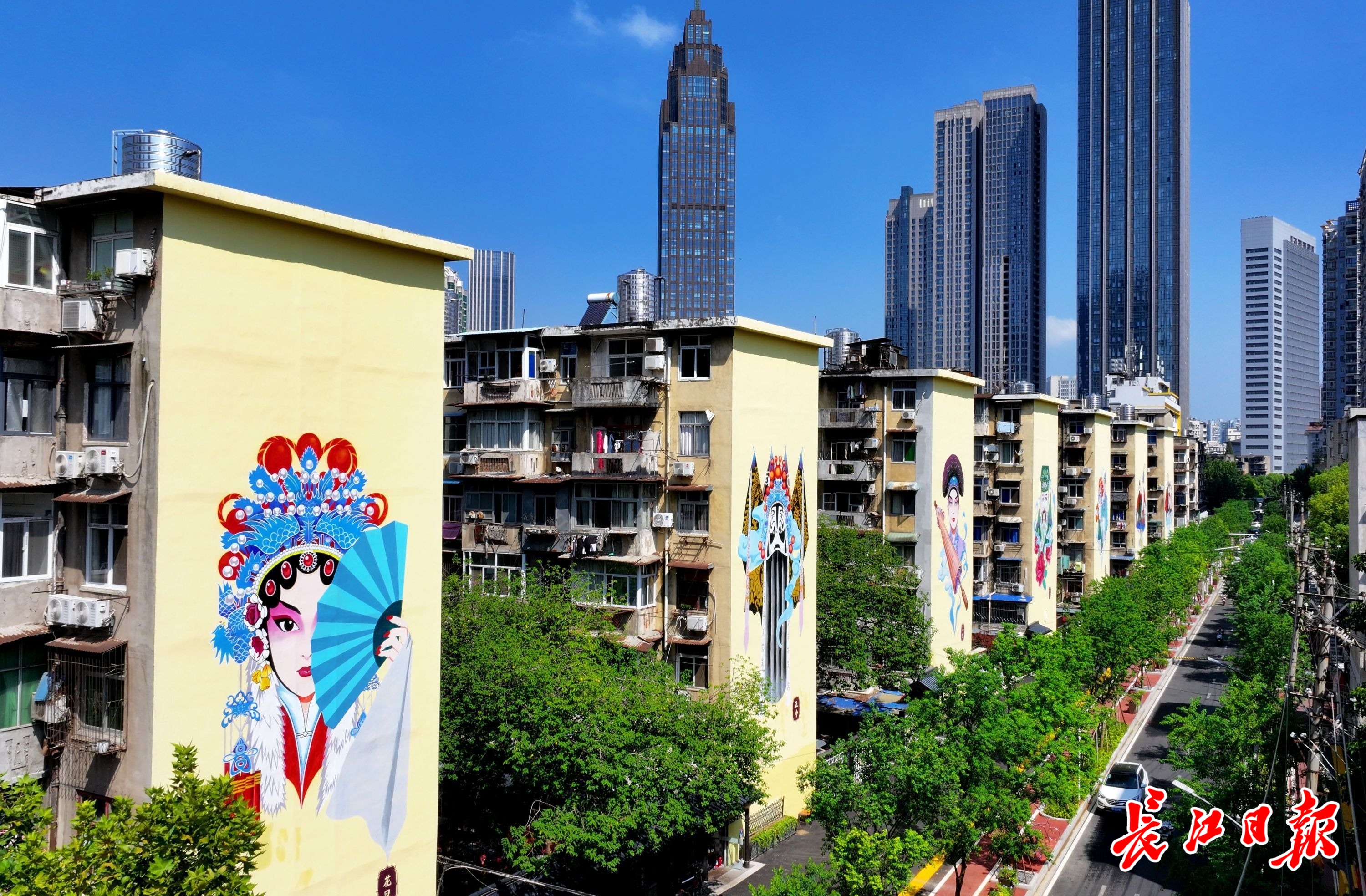北湖街道环保社区外墙彩绘京剧脸谱。长江日报记者刘斌 摄