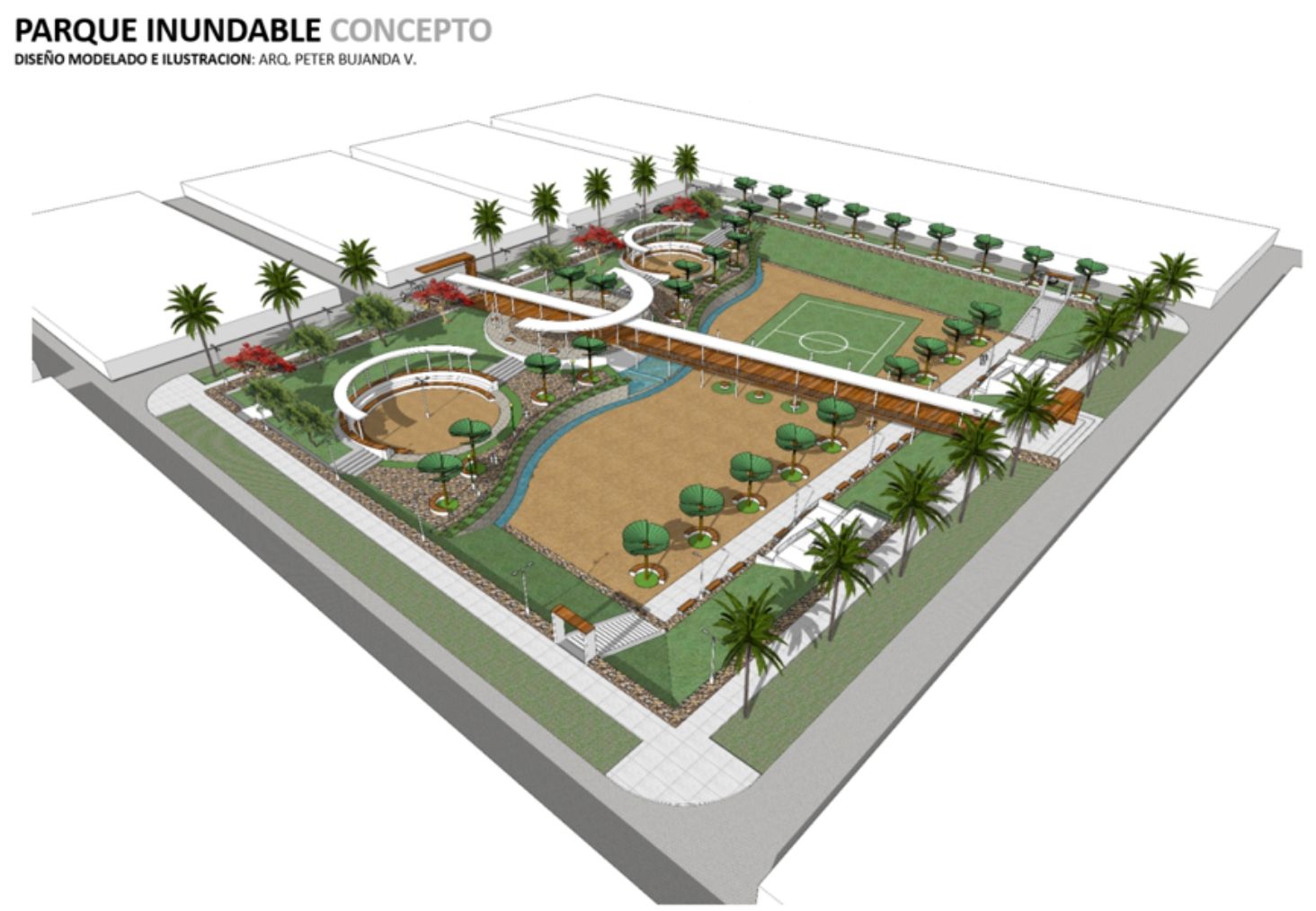 长江设计集团为秘鲁皮乌拉市设计的城市排水工程规划,兼有绿化和休闲功能。