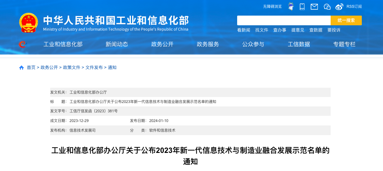 点击查看2023年新一代信息技术与制造业融合发展示范名单>>>