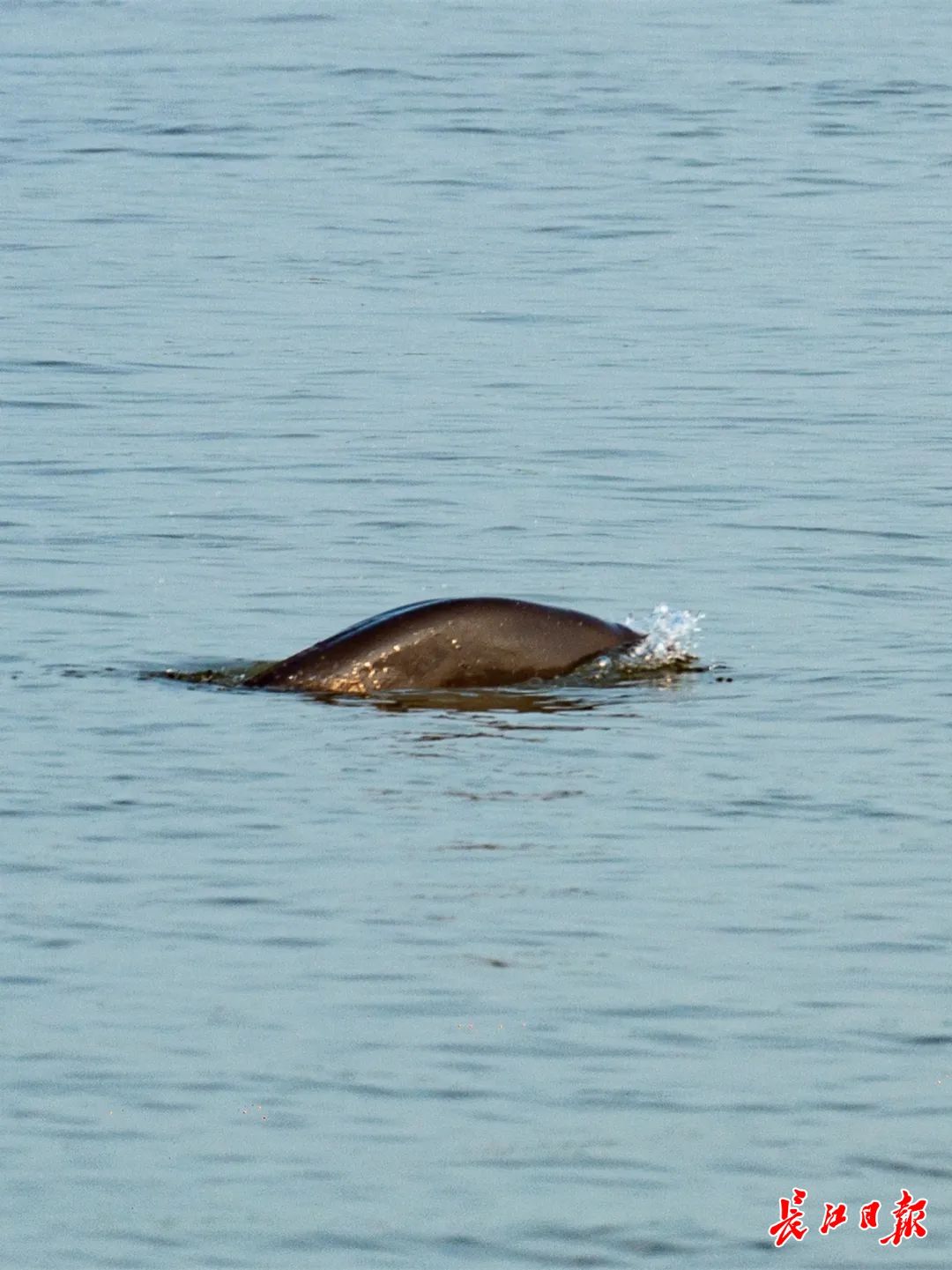 长江武汉段江豚出水瞬间。长江日报记者胡冬冬 摄