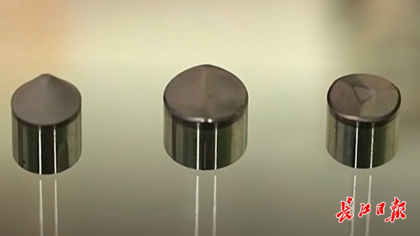 企业技术中心副主任徐磊介绍,打油井的钻头要在坚硬的岩层上开洞,不仅要靠“钻劲”,还得有“磨劲”,全靠钻头上嵌有的圆片状的超硬材料,行业内称之为金刚石复合片,靠这种金刚石复合片才能钻穿或磨穿岩层。作为拥有国内最大金刚石钻头数字化生产线的江钻公司,2023年7月研制出第一颗8万个大气压的复合片,锋利如牙齿一般,既高强耐磨,又高韧抗冲。“8万个大气压就相当于8头10吨重的大象站在一个指甲盖上产生的压强,这个压力等级是非常高的”。