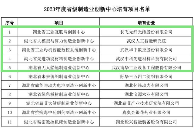 近日,湖北省经信厅公布2023年度省级制造业创新中心培育项目名单,武汉5个项目位列其中。