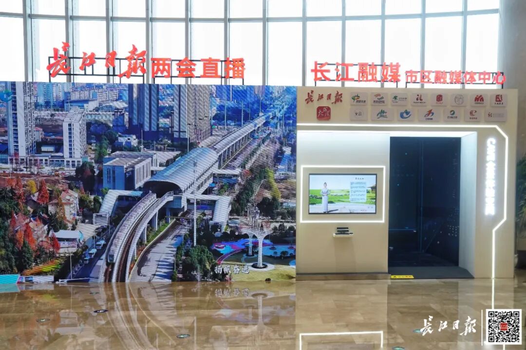 今年两会,长江日报联合15个区级融媒体中心,打造全息沉浸式融媒采访区,代表委员可以在虚拟采访区内体验黄鹤楼、江汉关、光谷场景,感受武汉发展,畅谈城市未来。