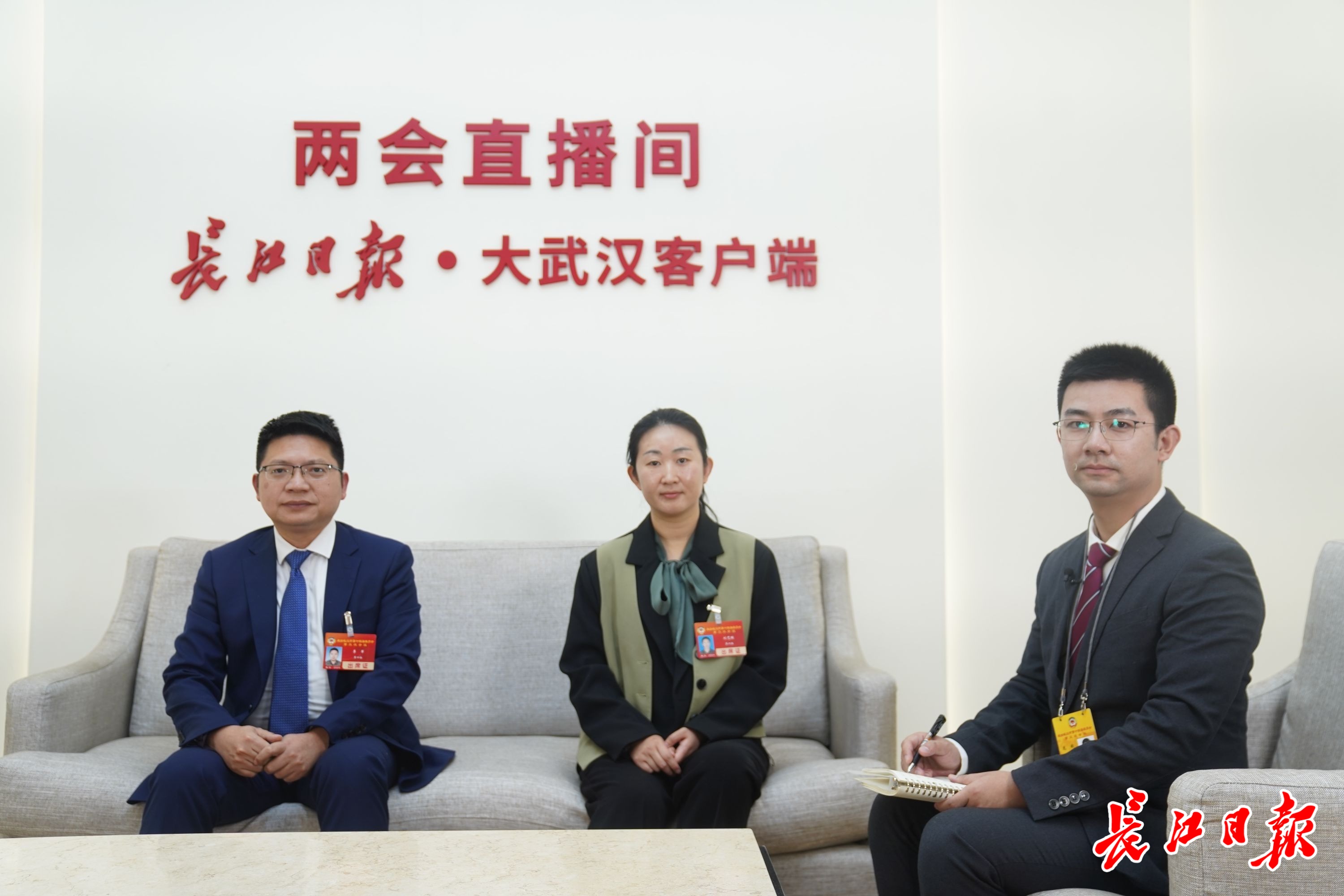 市政协委员、武汉发展战略研究院助理研究员刘艺璇(中)和市政协委员、大唐互联科技(武汉)有限公司总经理李军做客长江日报“两会直播间”。 长江日报记者肖僖 摄