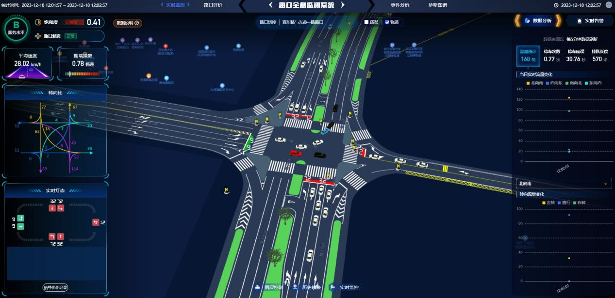 4个月前,中科通达开发的全息路口解决方案在武汉东站试运行,采集100多万次过车数据,识别近6万次超速、逆行等交通事件,通过自适应交通信号控制等技术,实现路口车辆延误减少约20%,通行效率提升约25%。