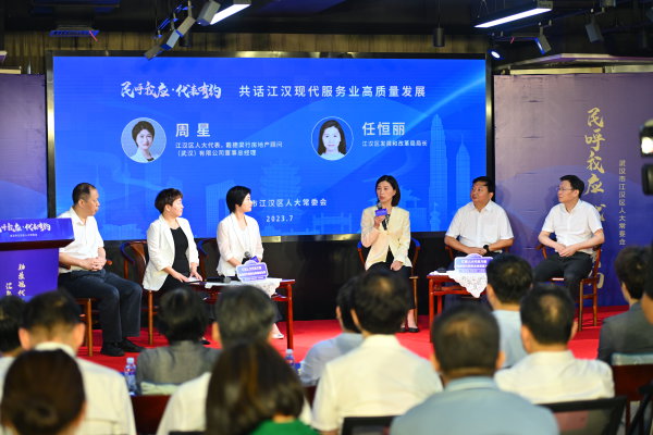 “对标先进,我们还面临哪些问题和短板?”“下一步有哪些措施来提升服务业发展能级?”……一边是带着期盼提问题,一边是直奔主题答举措。2023年7月11日,江汉区人大常委会聚焦现代服务业高质量发展,开展“民呼我应·代表有约”主题活动。活动现场,江汉区的四级人大代表、区政府相关部门、企业家代表、专家学者面对面交流,“碰撞”出许多新思路新举措,人大代表的“金点子”转变成一把把助推高质量发展的“金钥匙”。