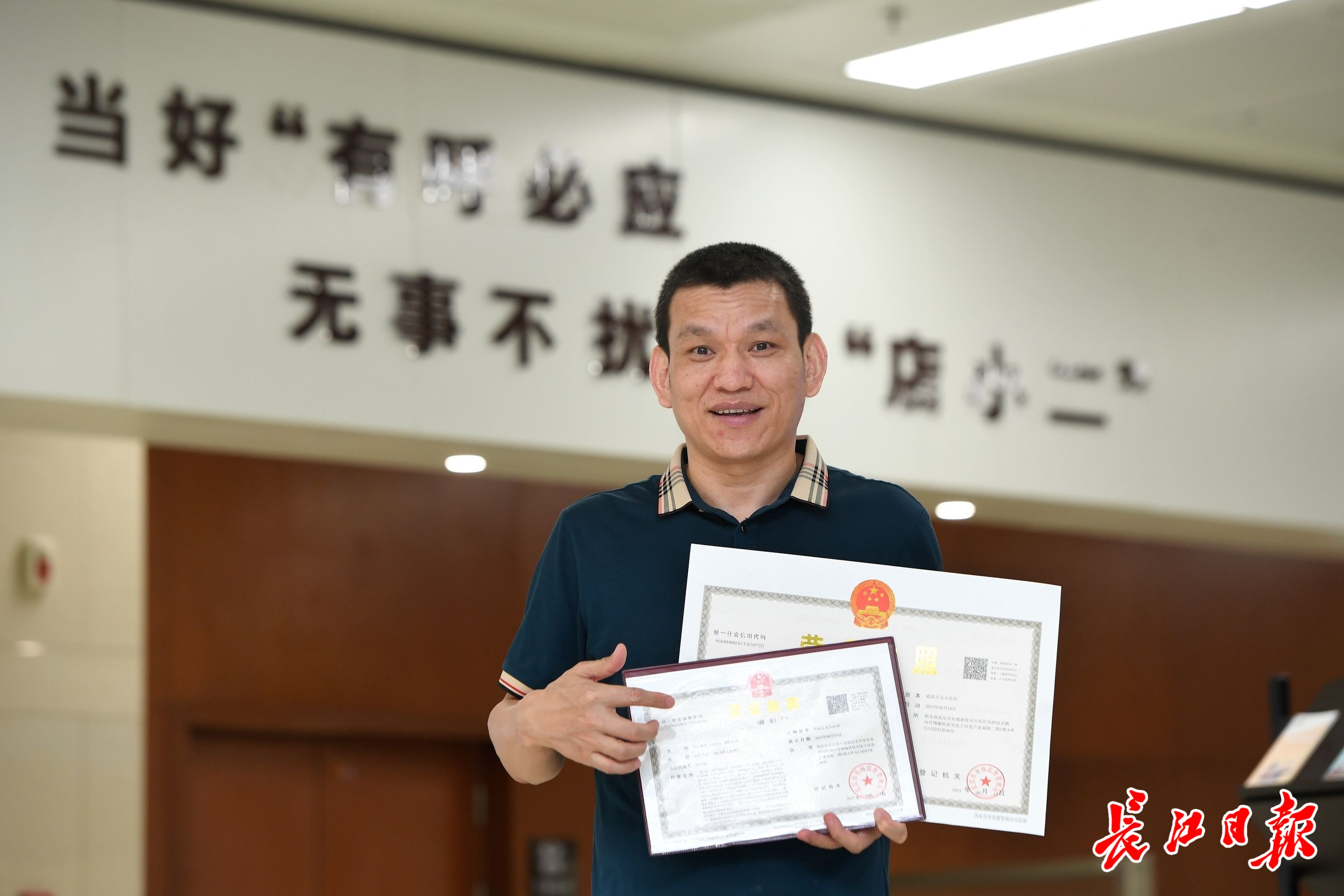 梁志强博士开心地向长江日报记者展示他在光谷新注册企业的营业执照。长江日报记者 周超 摄