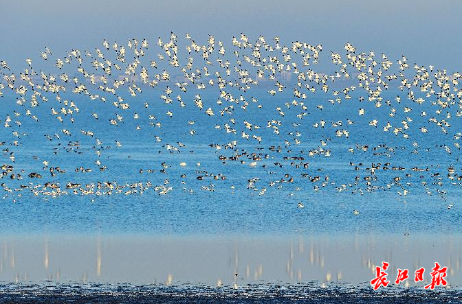 沉湖国际重要湿地,万鸟齐翱翔。长江日报记者史伟 摄