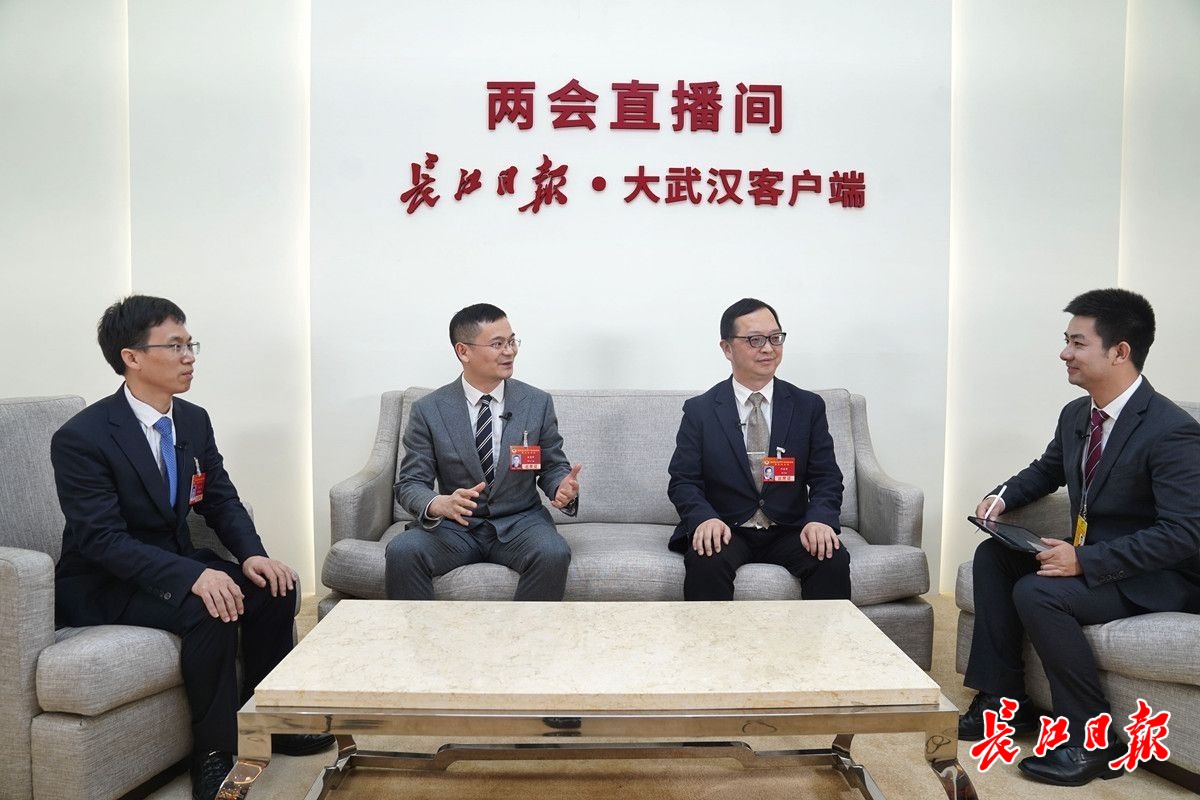 1月20日,市人大代表孙军(左一)、市政协常委陈孝军(左二)、市政协委员邱志军(左三)做客长江日报两会直播间。记者 肖僖 摄